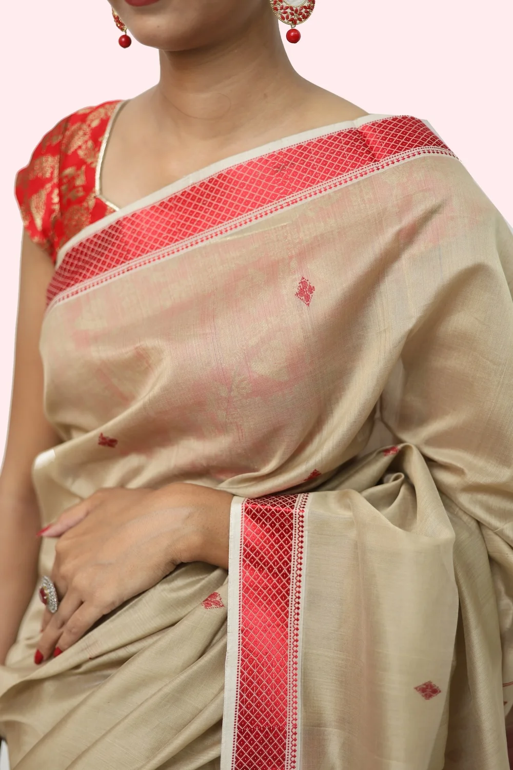 Imperial Tussar Zari Brocade handloom Saree with Tassels