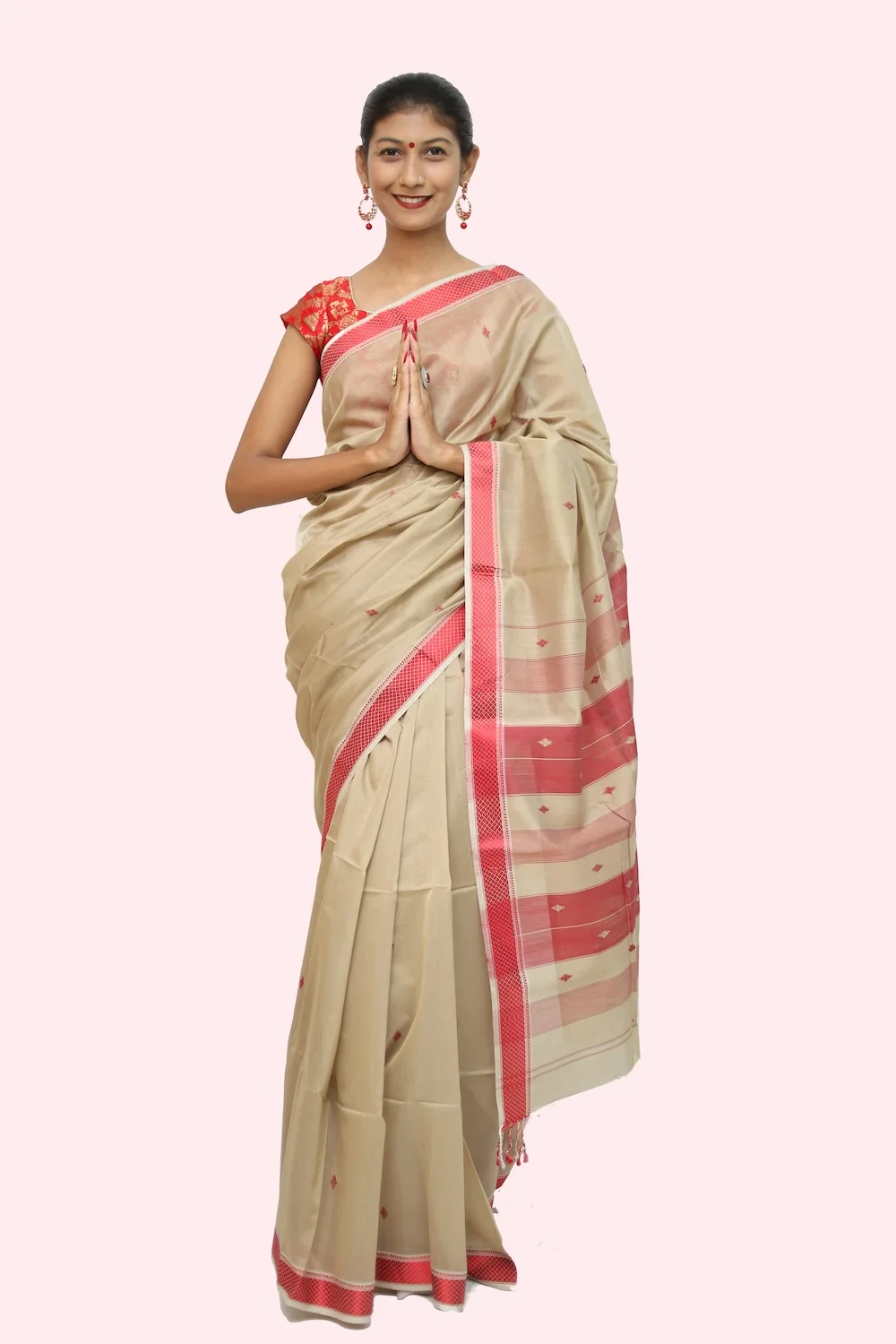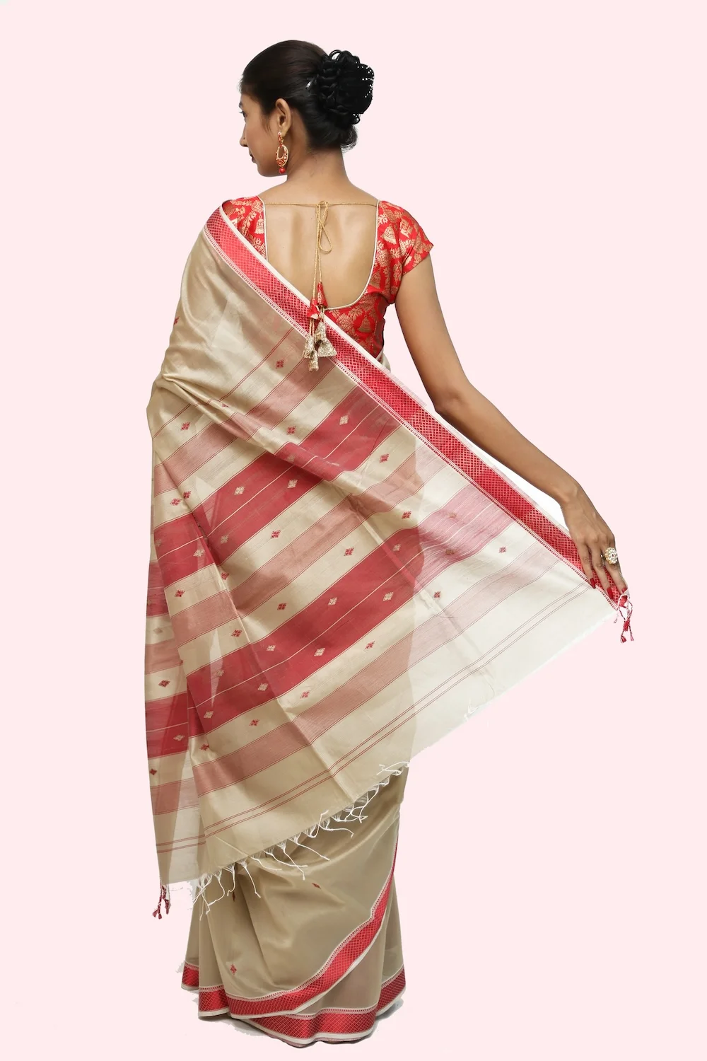 Imperial Maheshwari handloom Tissue Saree with Tassels – Beige