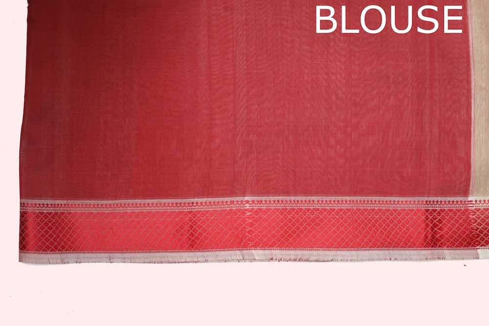Imperial Maheshwari handloom Tissue Saree with Tassels – Red