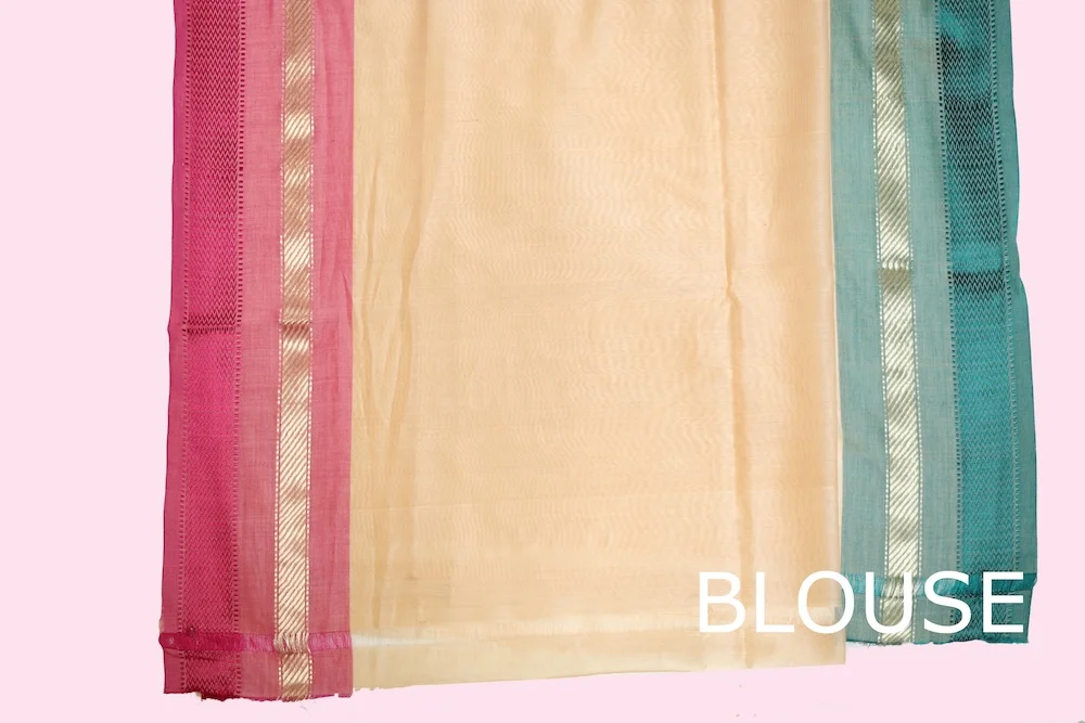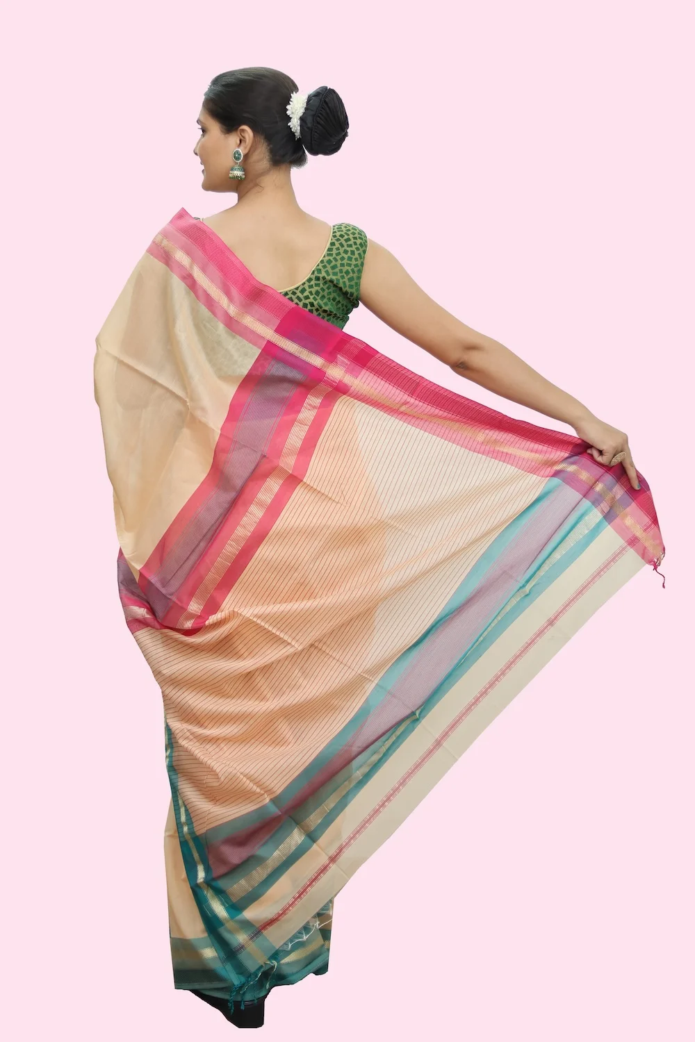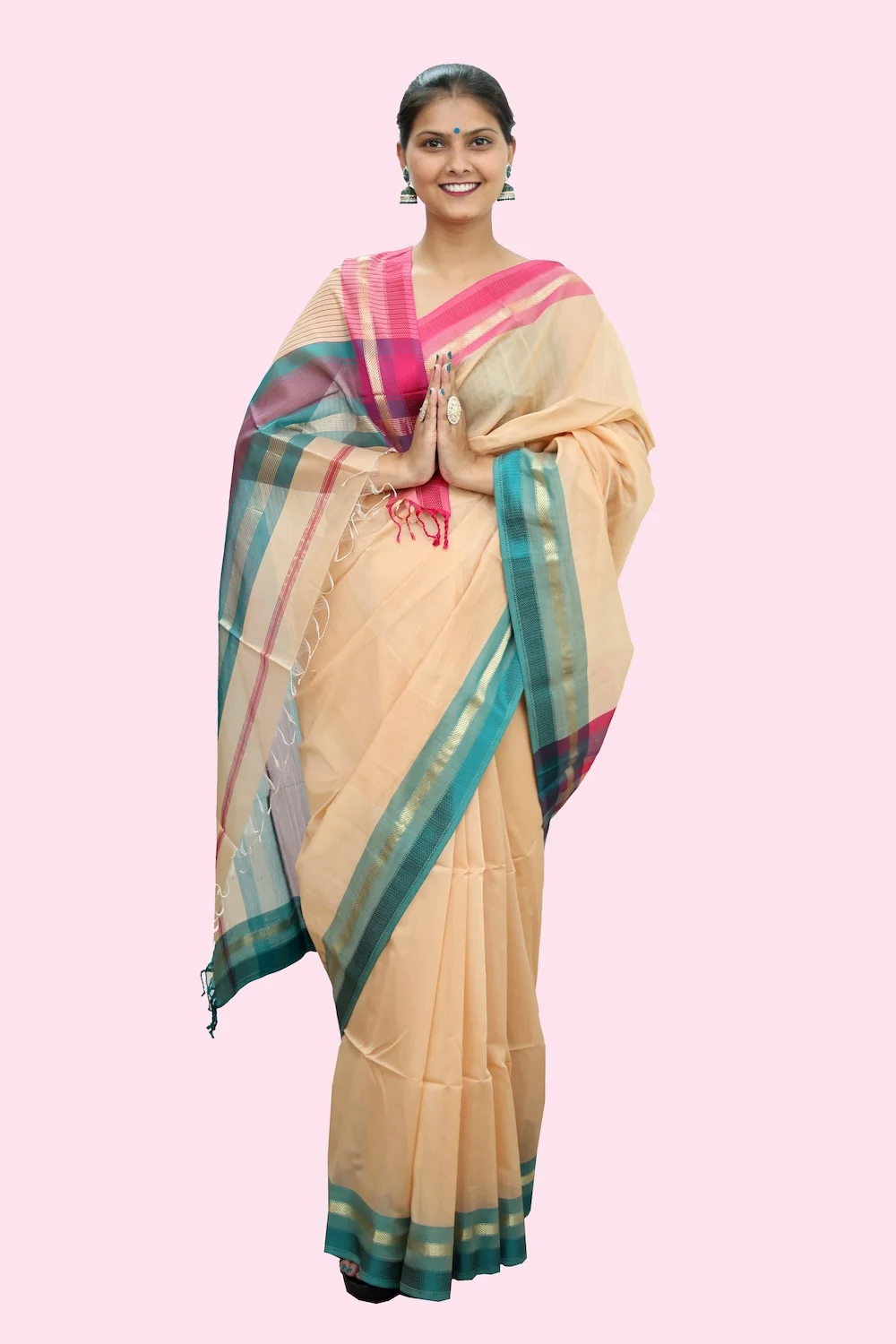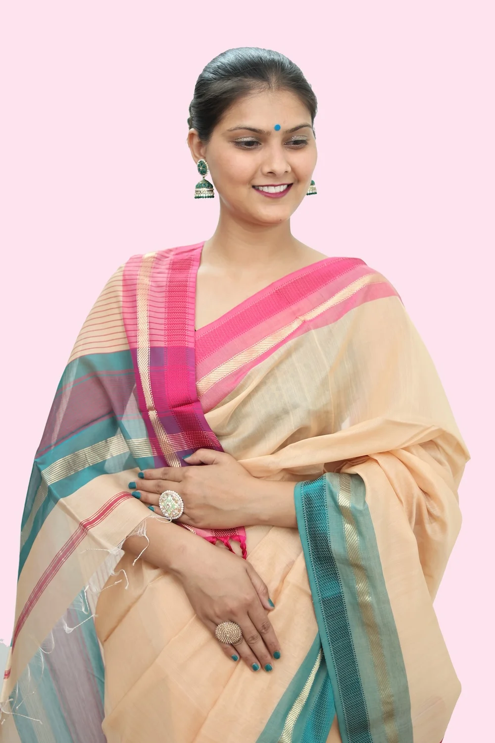 Imperial Maheshwari handloom Tissue Saree with Tassels – Beige
