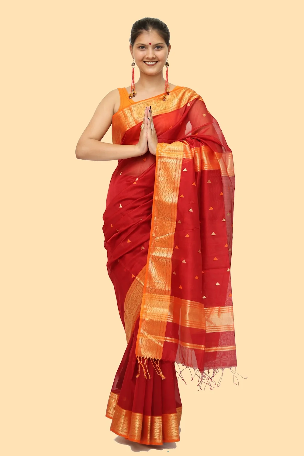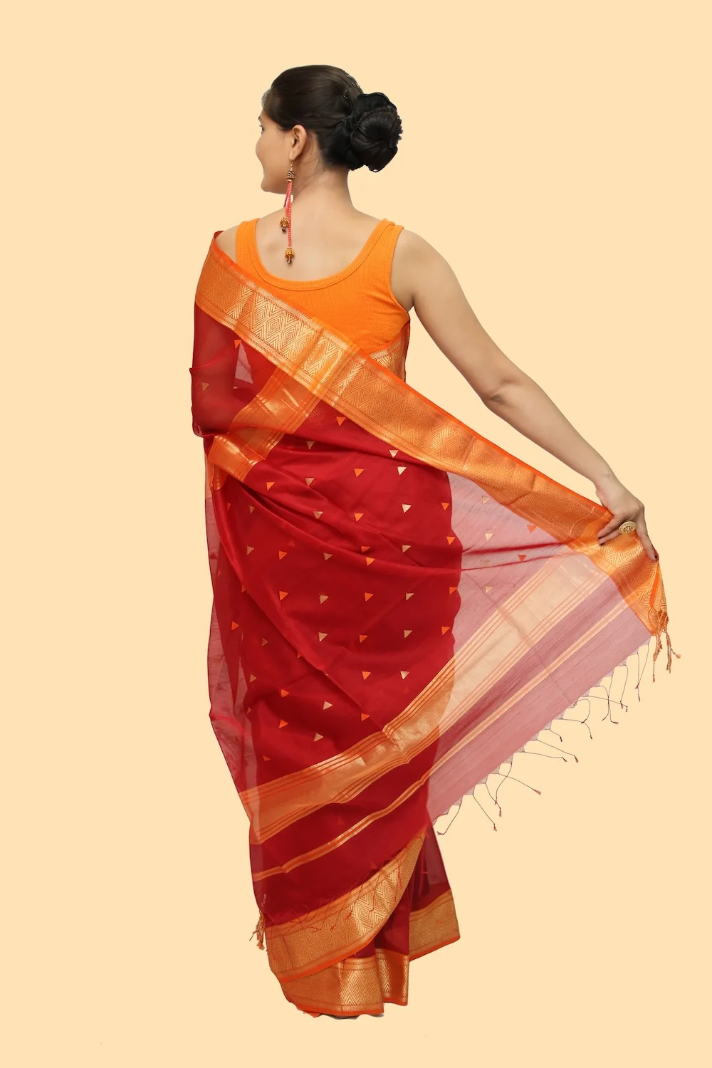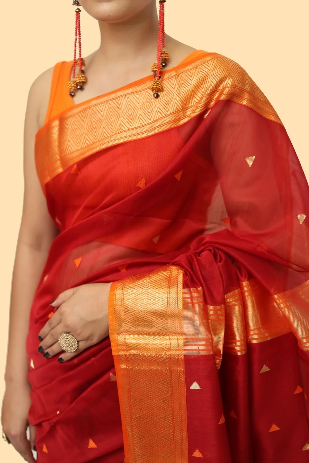 Imperial Maheshwari handloom Tissue Saree with Tassels – Red