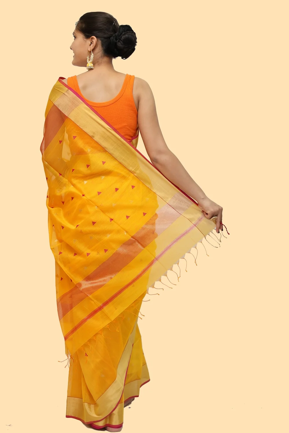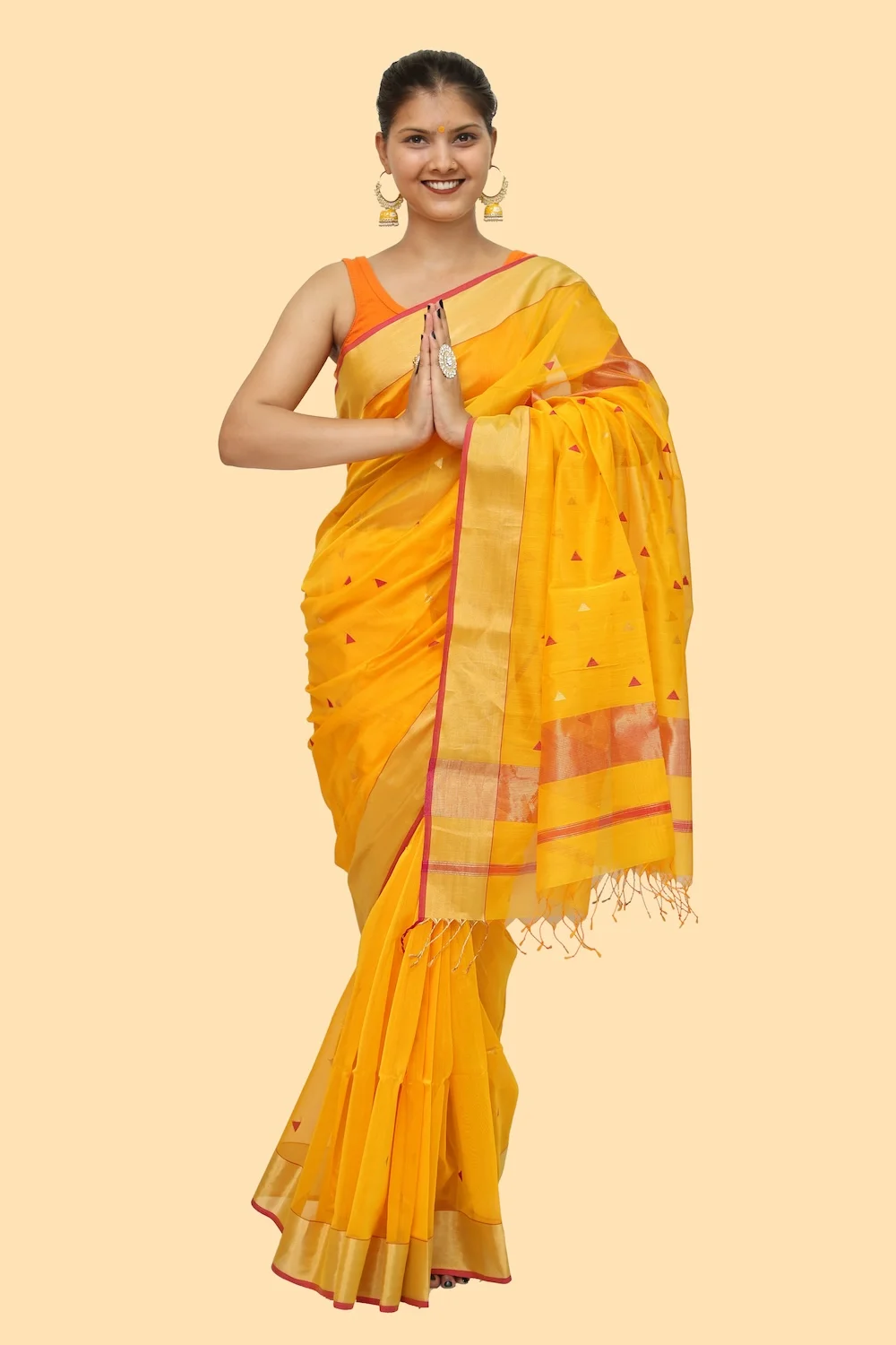 Beautiful Yellow Pink Zari Borcade handloom Saree with Tassels