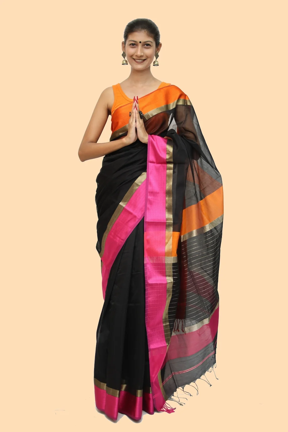 Imperial Maheshwari Rich Thread Brocade Saree with Tassels