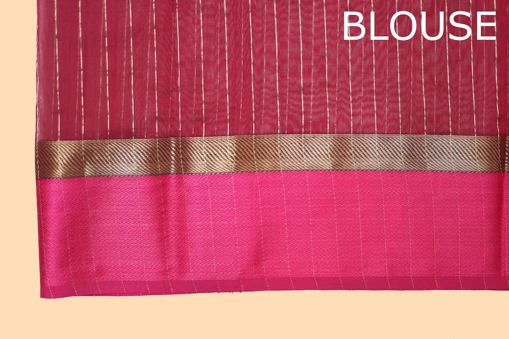 Imperial Maheshwari handloom Tissue Saree with Tassels – Pastel Pink