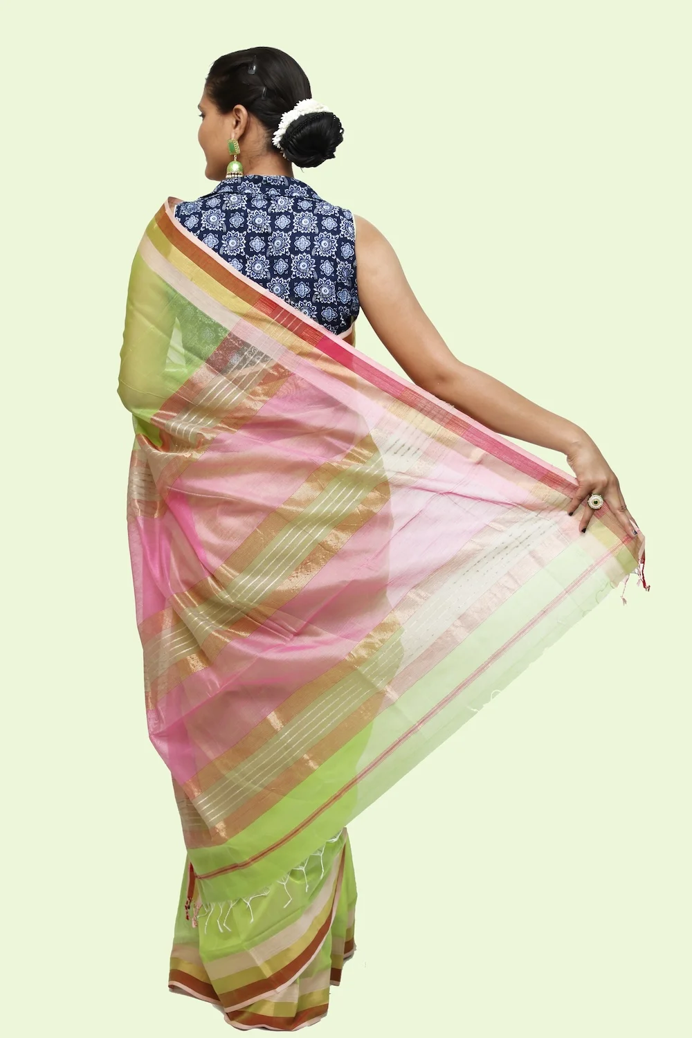 Imperial Maheshwari Rich Thread Brocade Saree with Tassels – Green