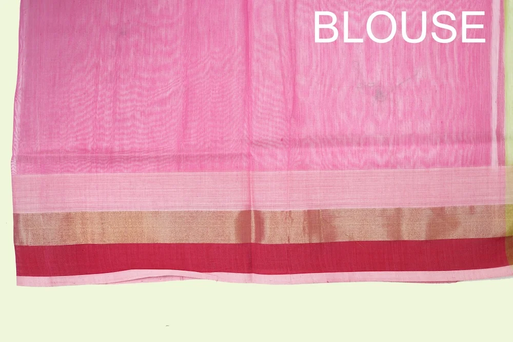 Imperial Maheshwari handloom Tissue Saree with Tassels – Pastel Pink