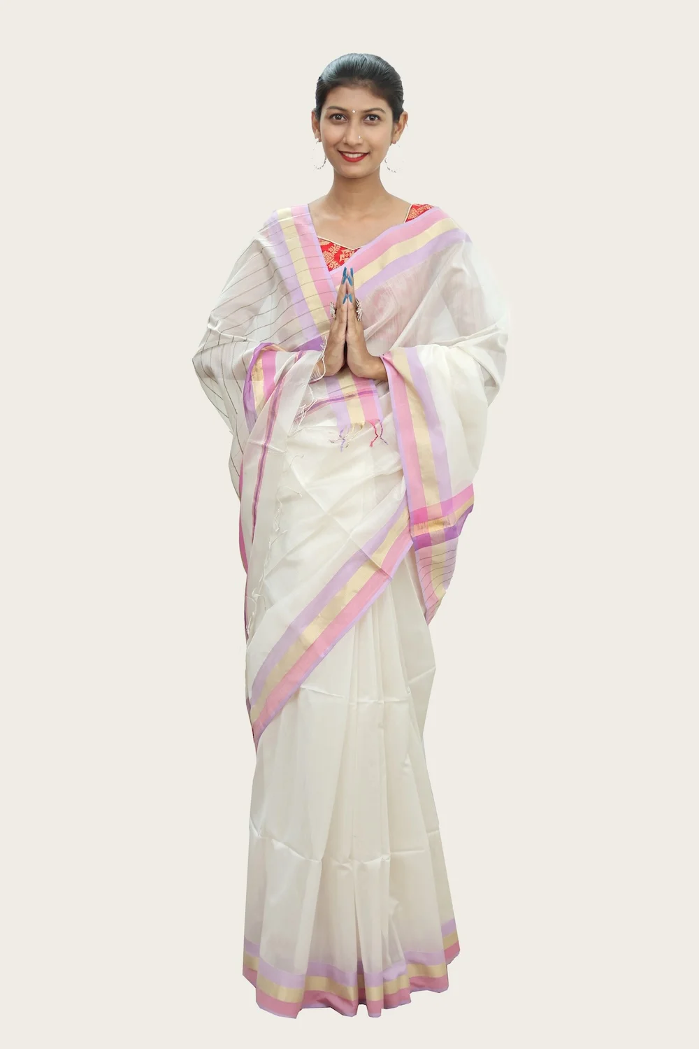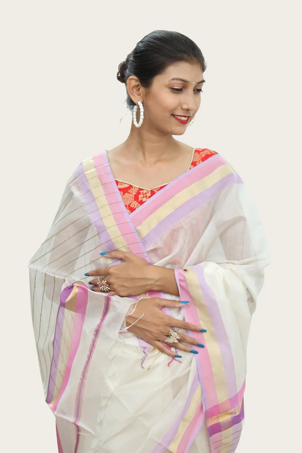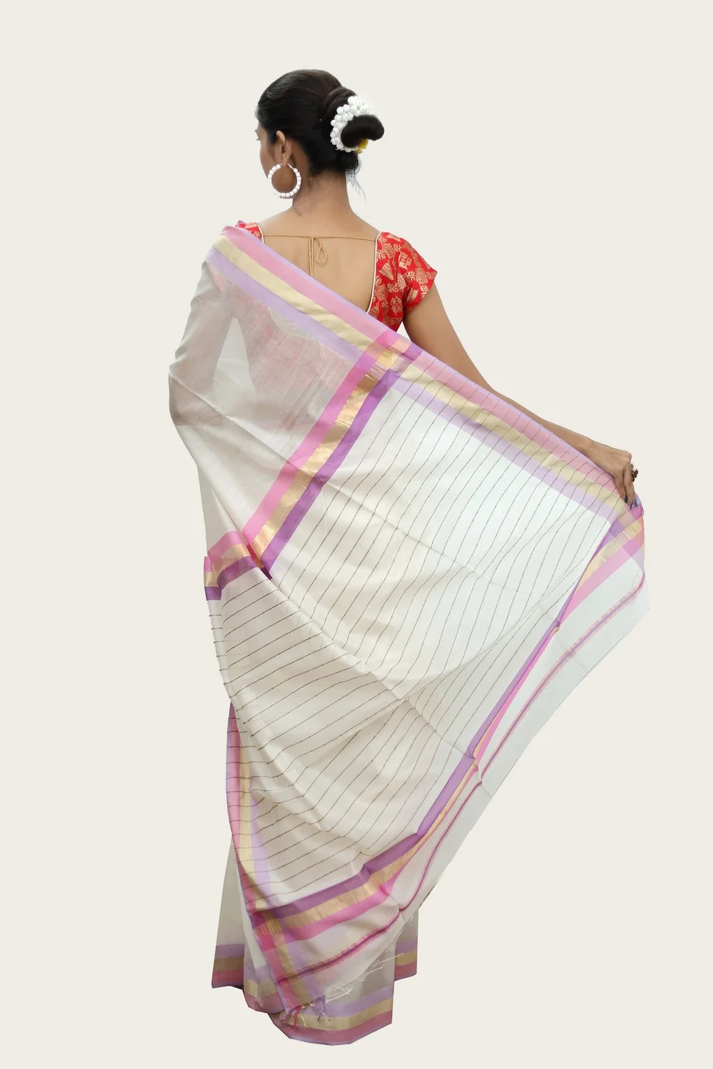Epic Ivory Kosa Pallu White handloom Saree with Tassels