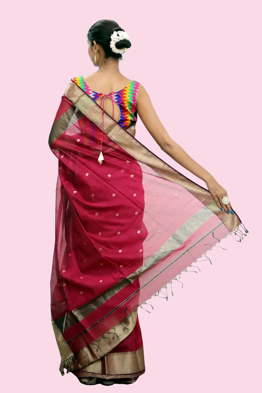 Imperial Maheshwari Rich Thread Brocade Saree with Tassels