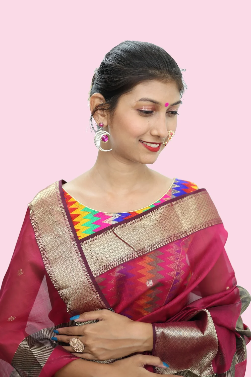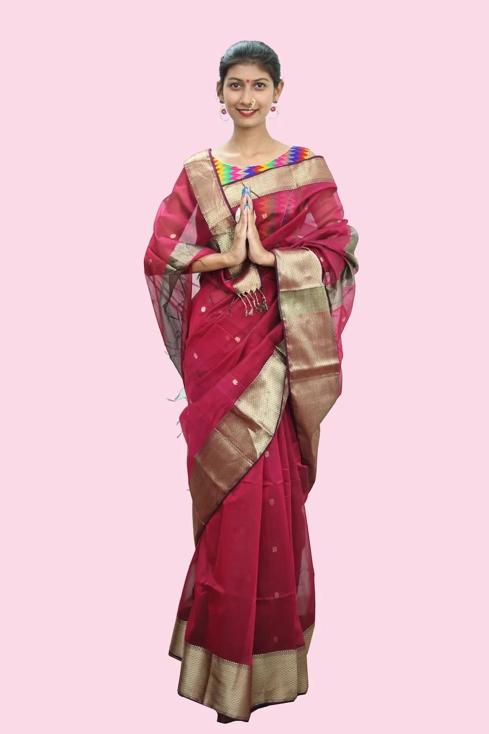 Epic Rani Pink Mix Border handloom Saree with Tassels