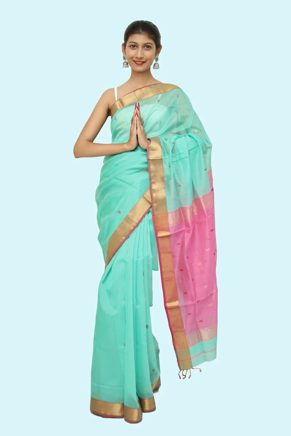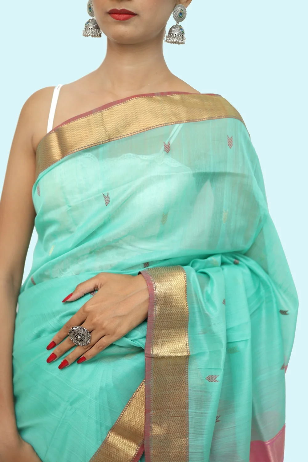 Imperial Maheshwari handloom Tissue Saree with Tassels – Azure Blue