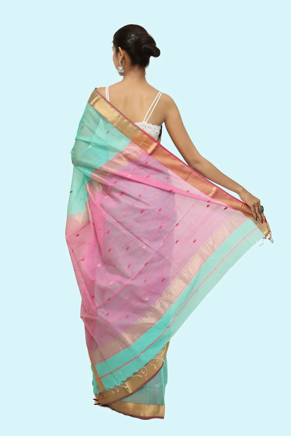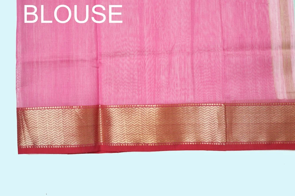 Imperial Maheshwari handloom Tissue Saree with Tassels – Pastel Pink