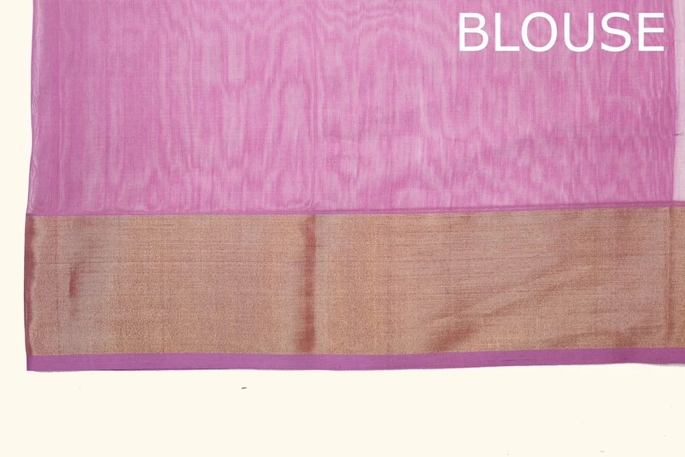 Imperial Maheshwari handloom Tissue Saree with Tassels – Pastel Pink