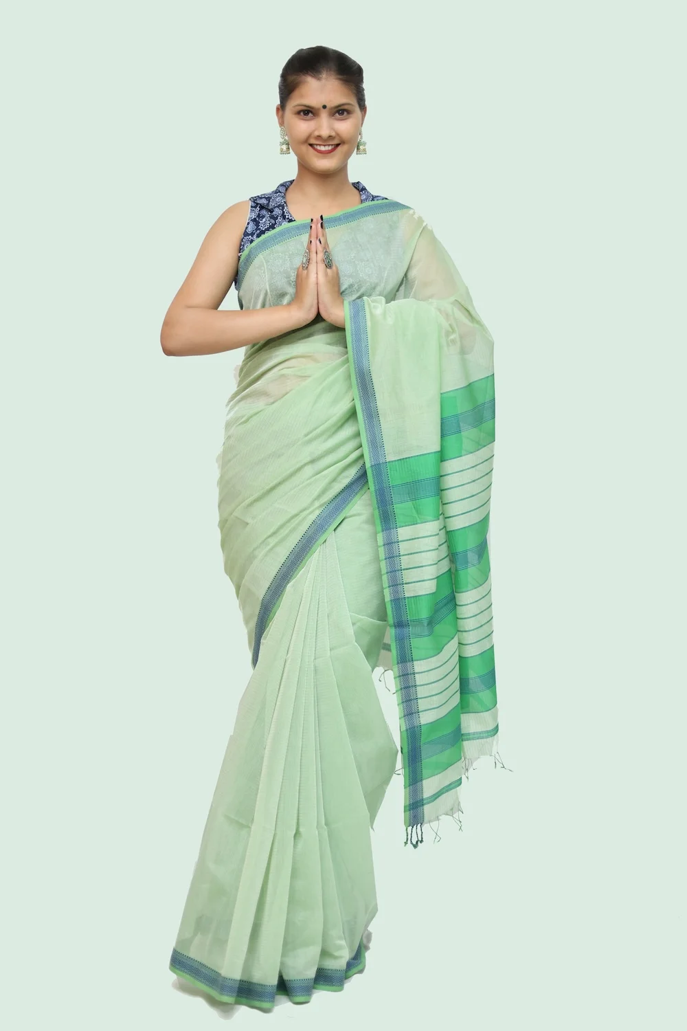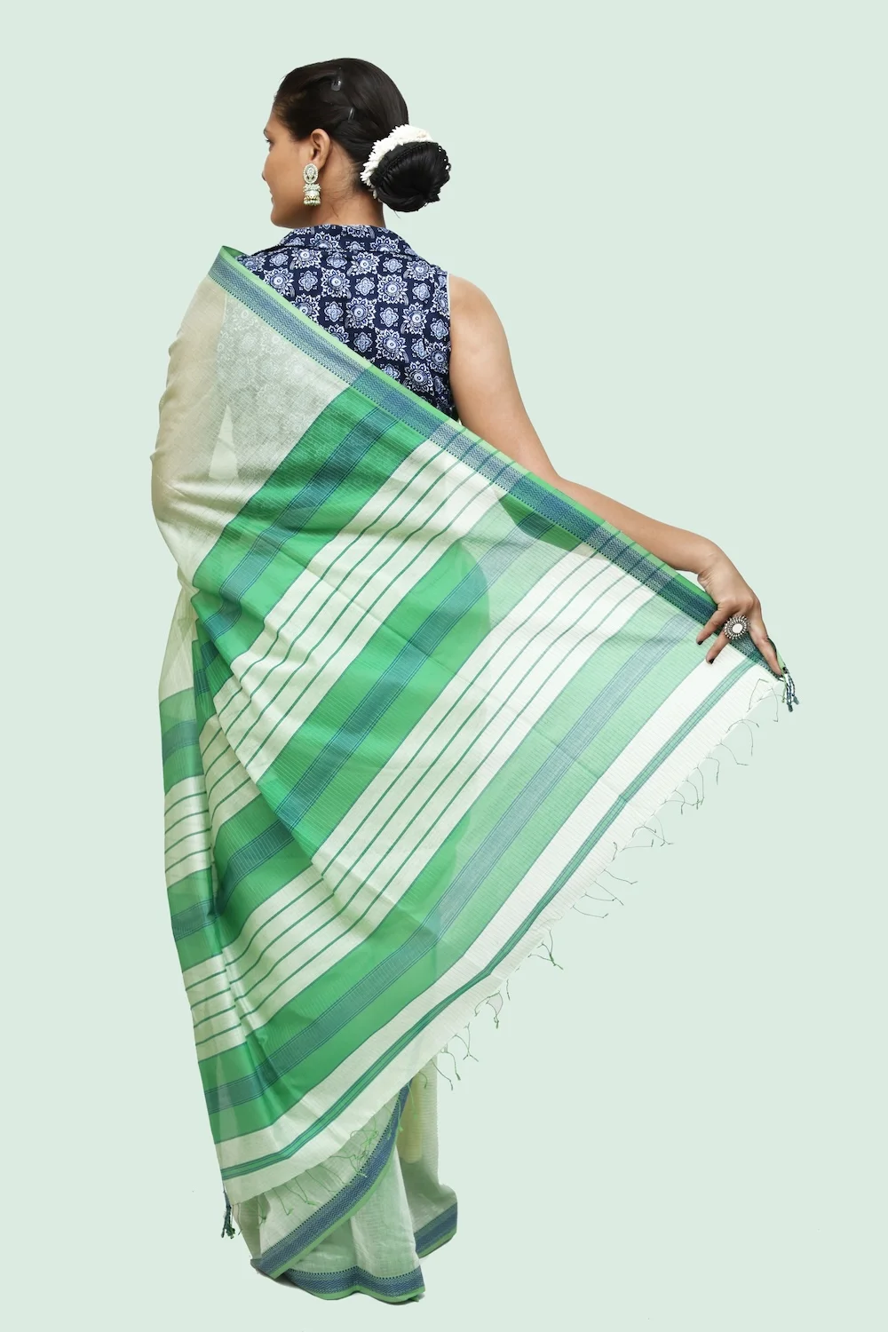 Imperial Maheshwari Rich Thread Brocade Saree with Tassels – Green