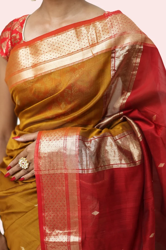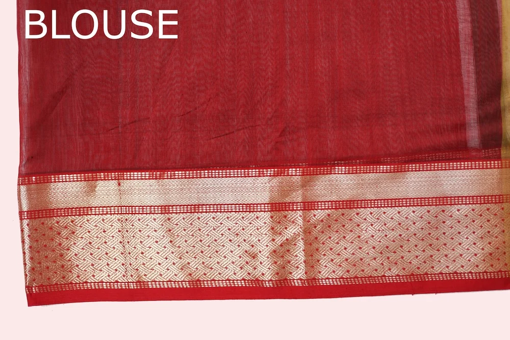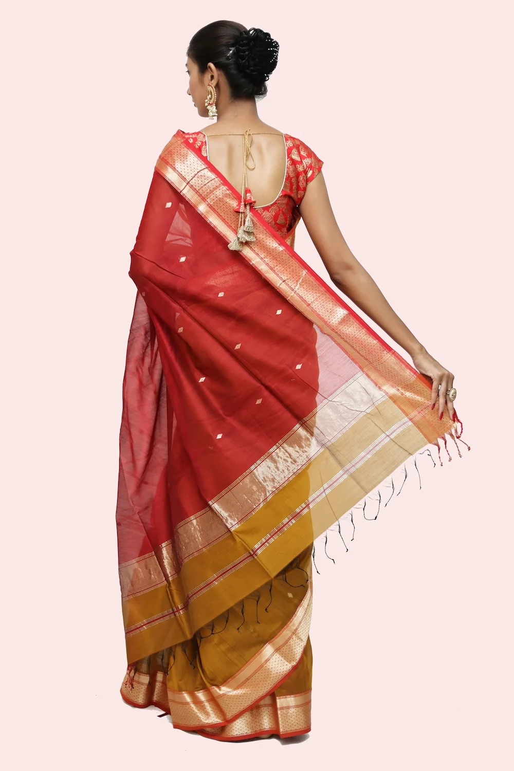 Imperial Maheshwari handloom Tissue Saree with Tassels – Red