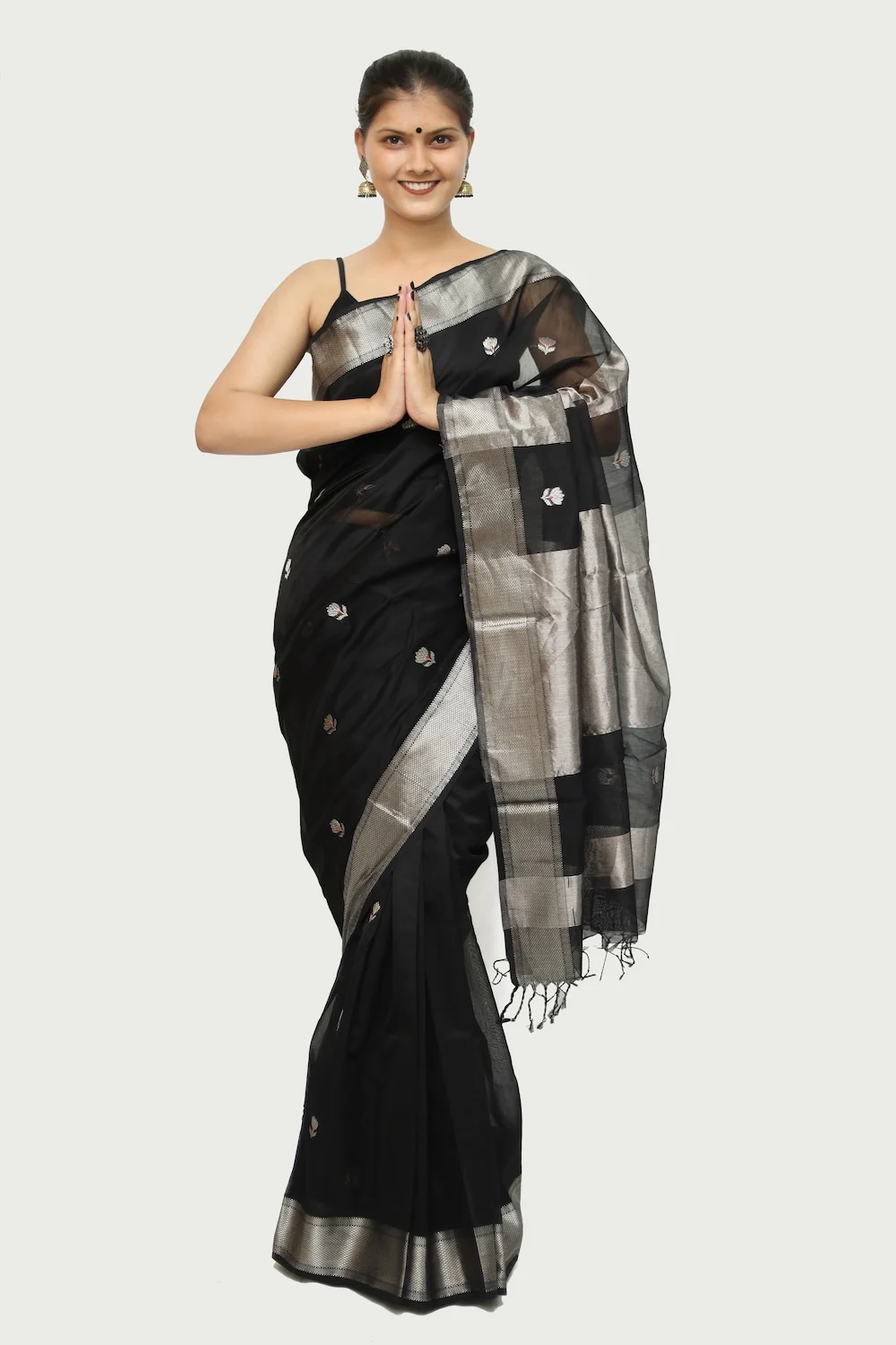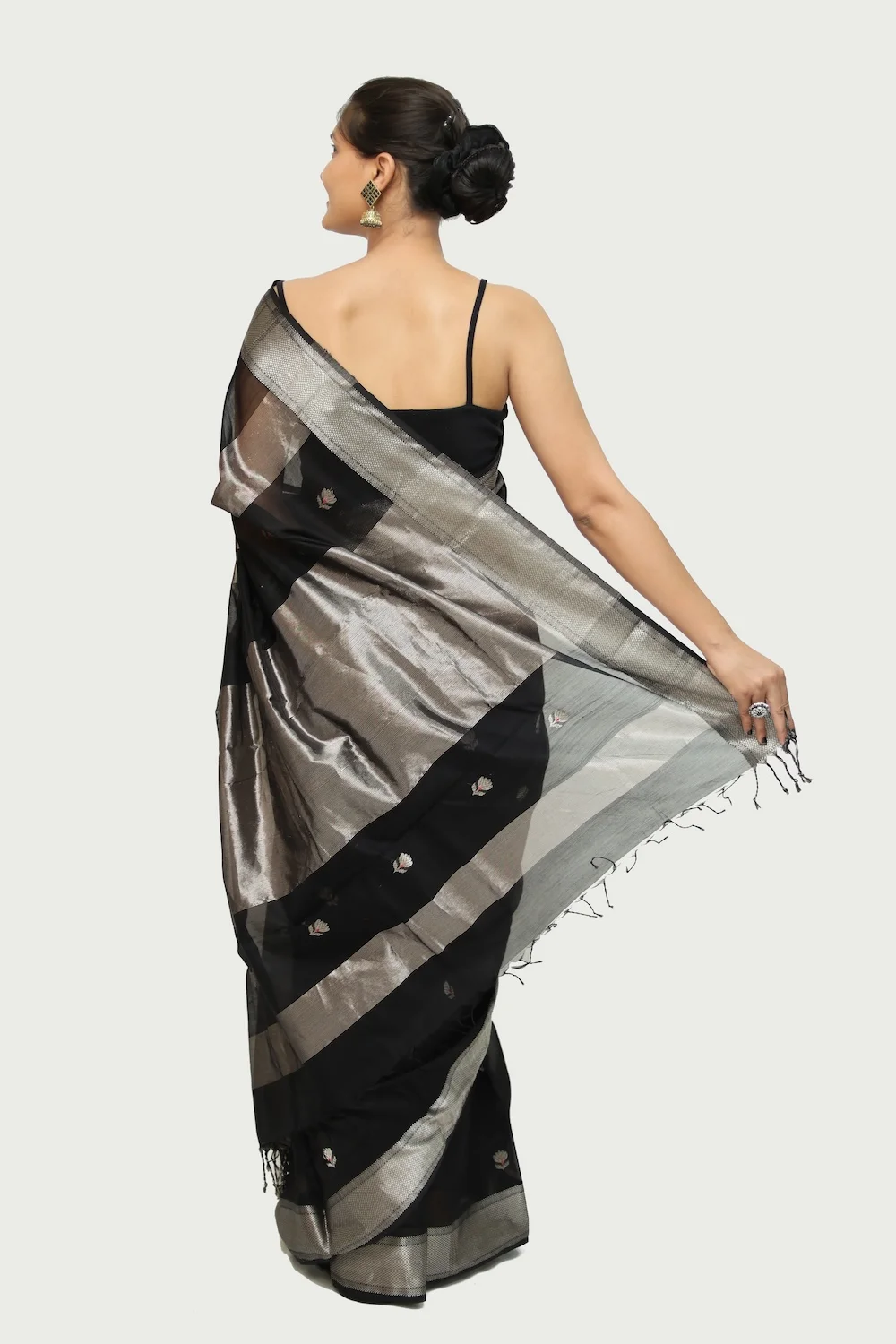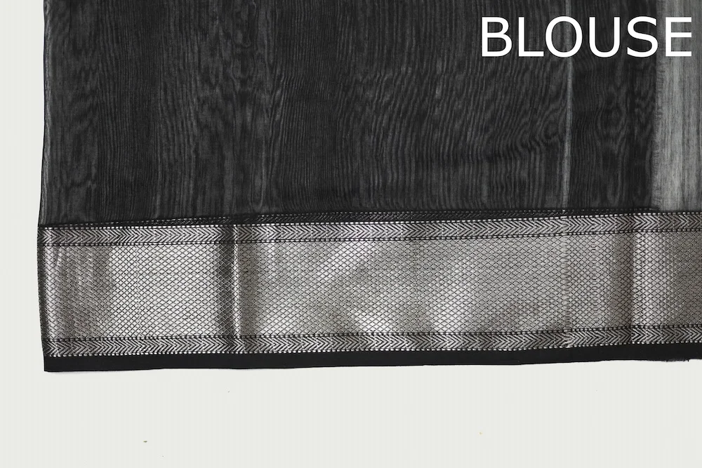 Inky Black Maheshwari handloom Saree with Tassels