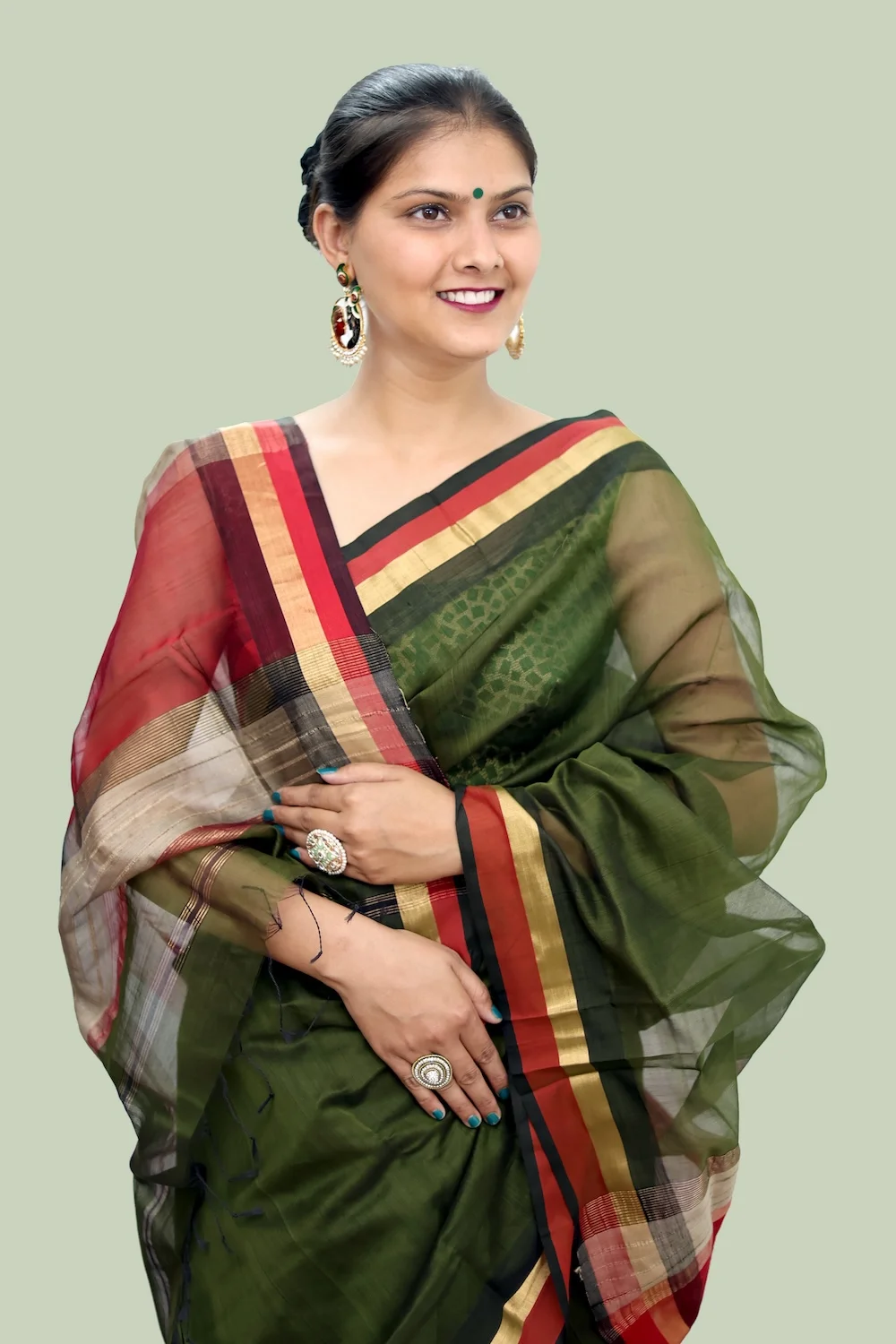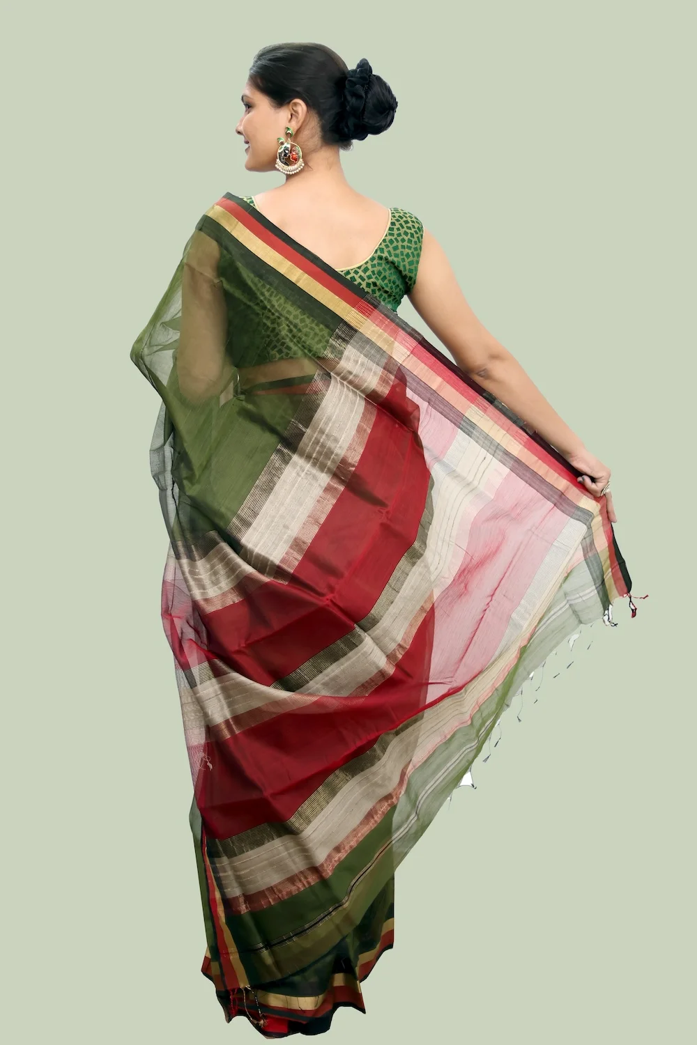 Imperial Maheshwari Rich Thread Brocade Saree with Tassels – Green