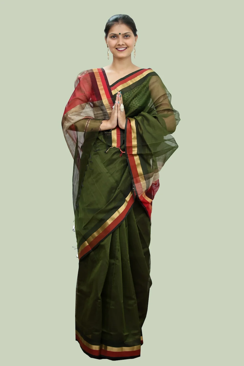 Legacy Kosa Pallu Equisite Green handloom Saree with Tassels
