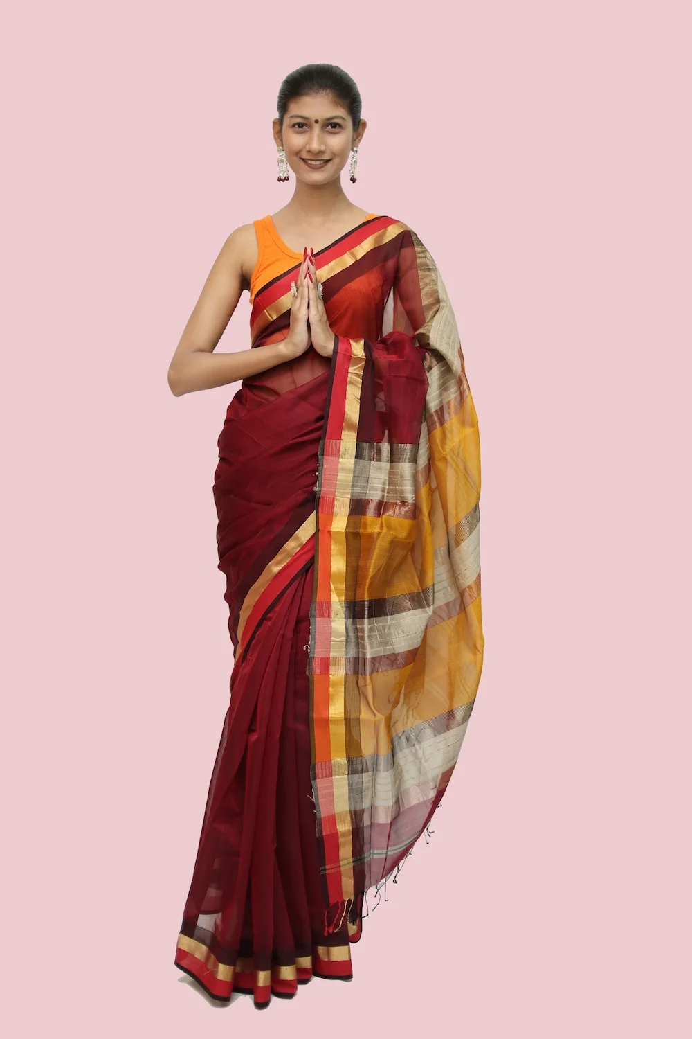 Legacy Kosa Pallu Maroon handloom Saree with Tassels