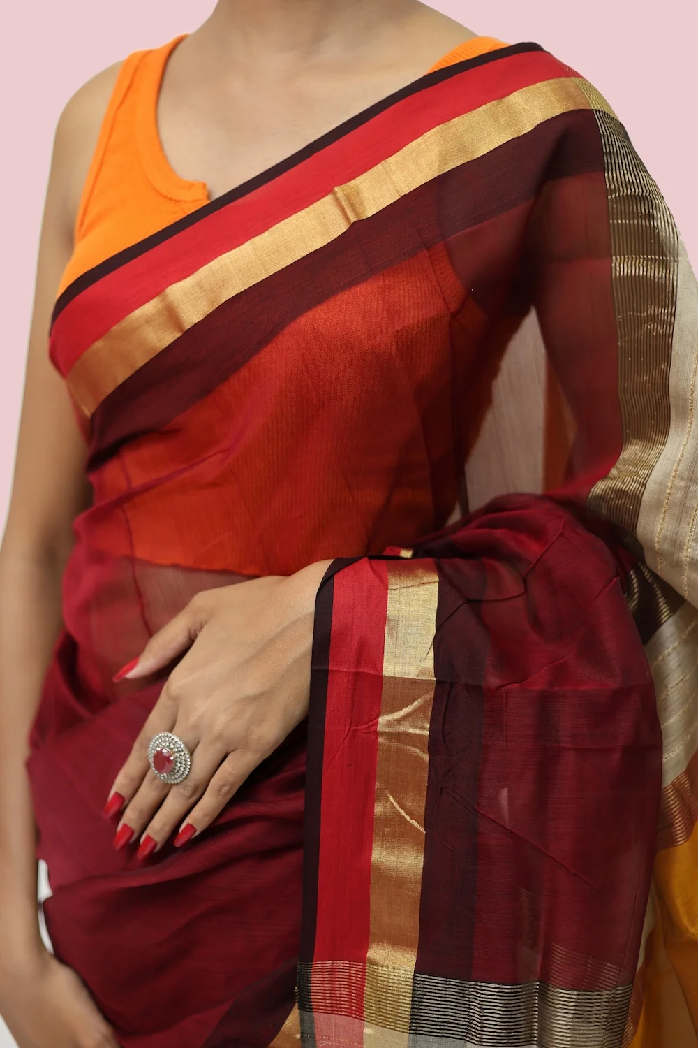 Imperial Maheshwari handloom Tissue Saree with Tassels – Red