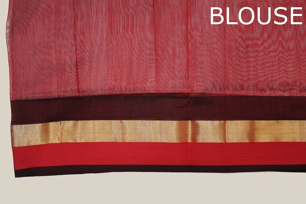 Imperial Maheshwari handloom Tissue Saree with Tassels – Red