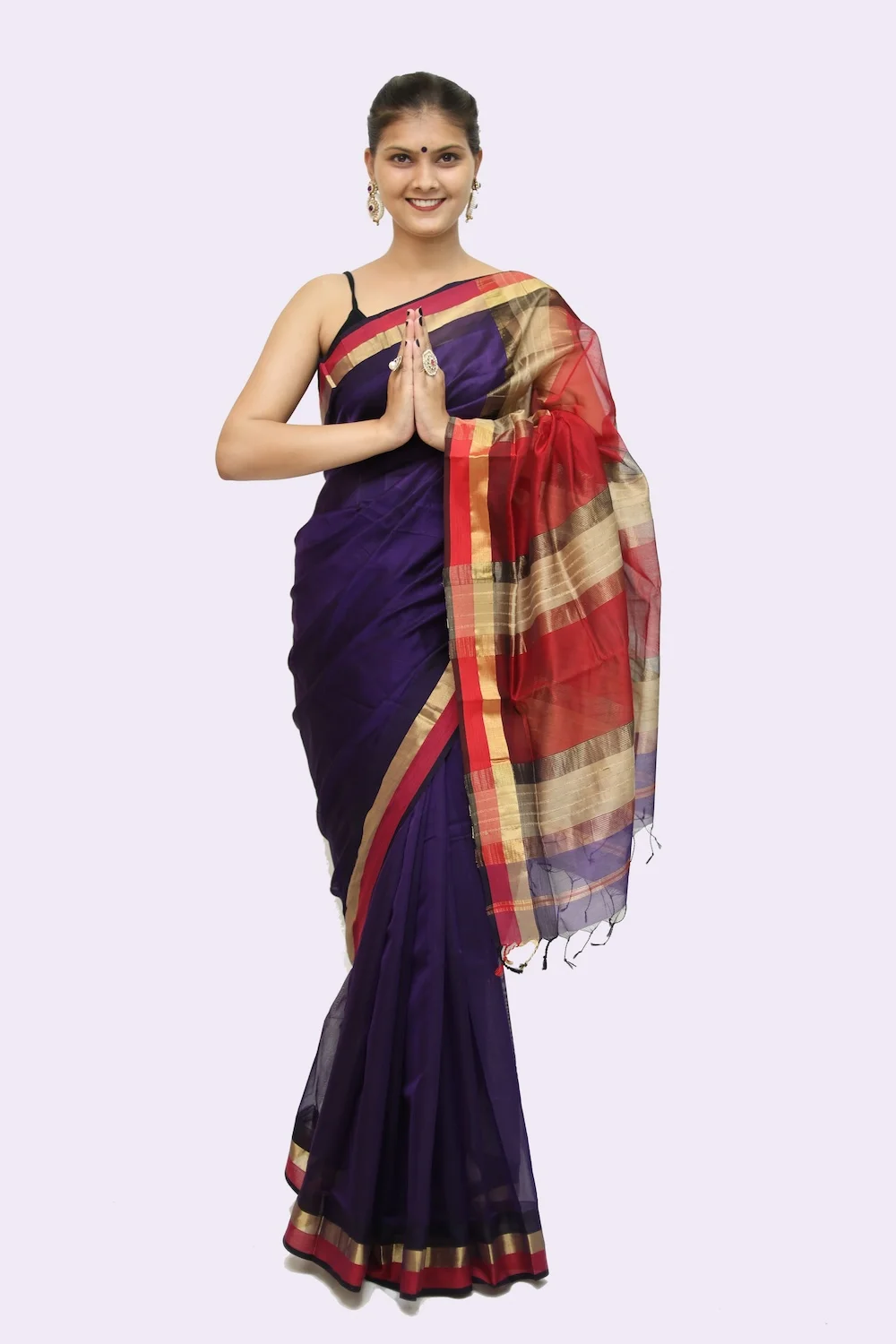 Legacy Kosa Pallu Purple handloom Saree with Tassels