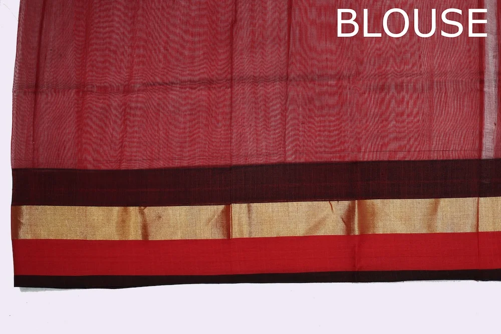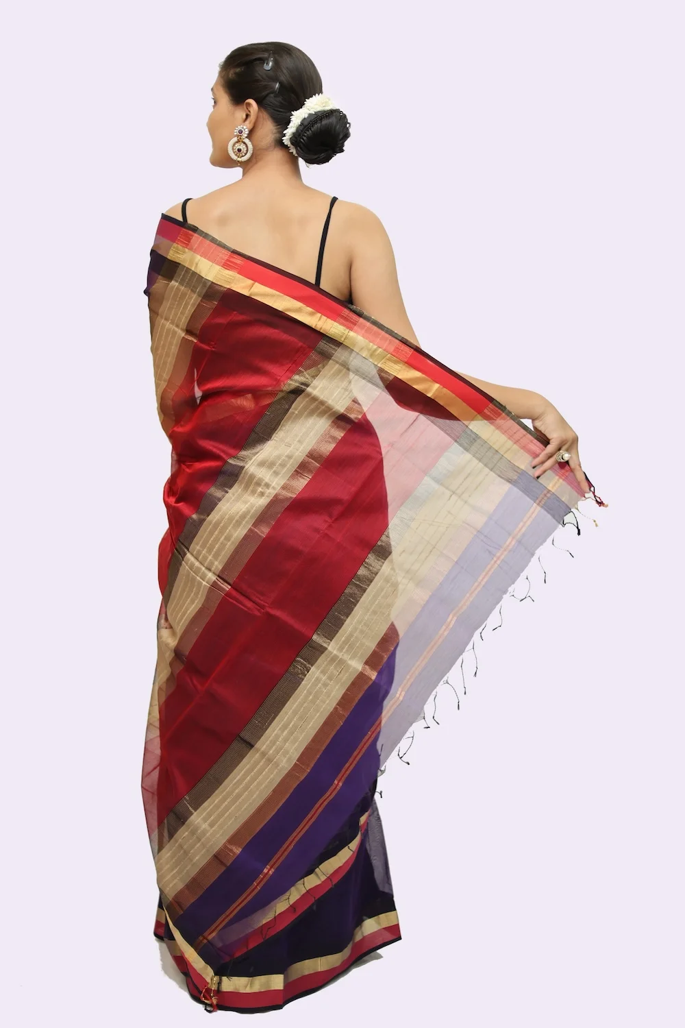 Imperial Maheshwari handloom Tissue Saree with Tassels – Red
