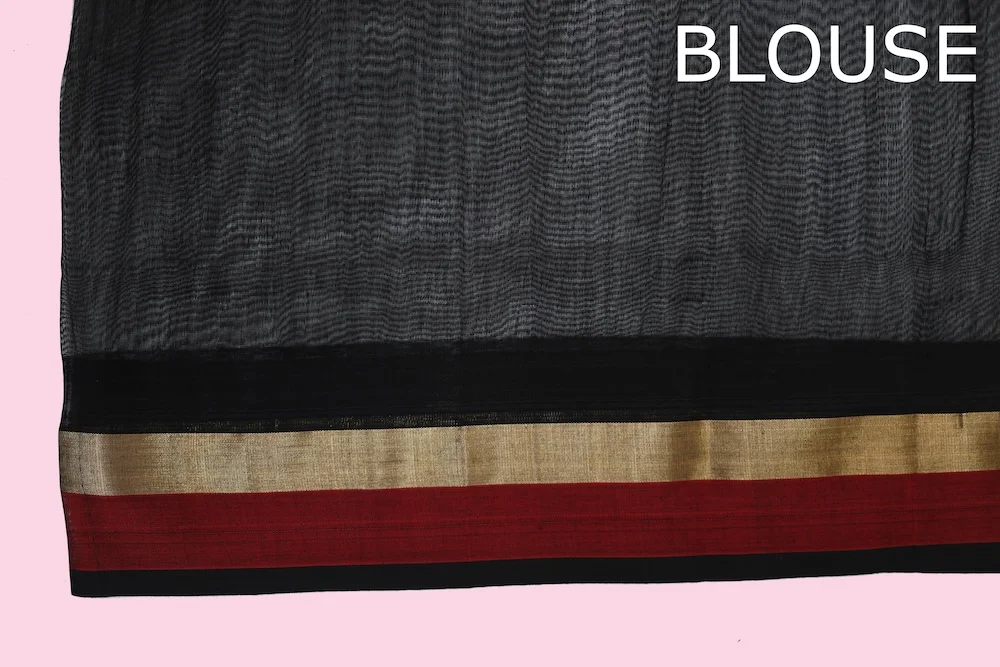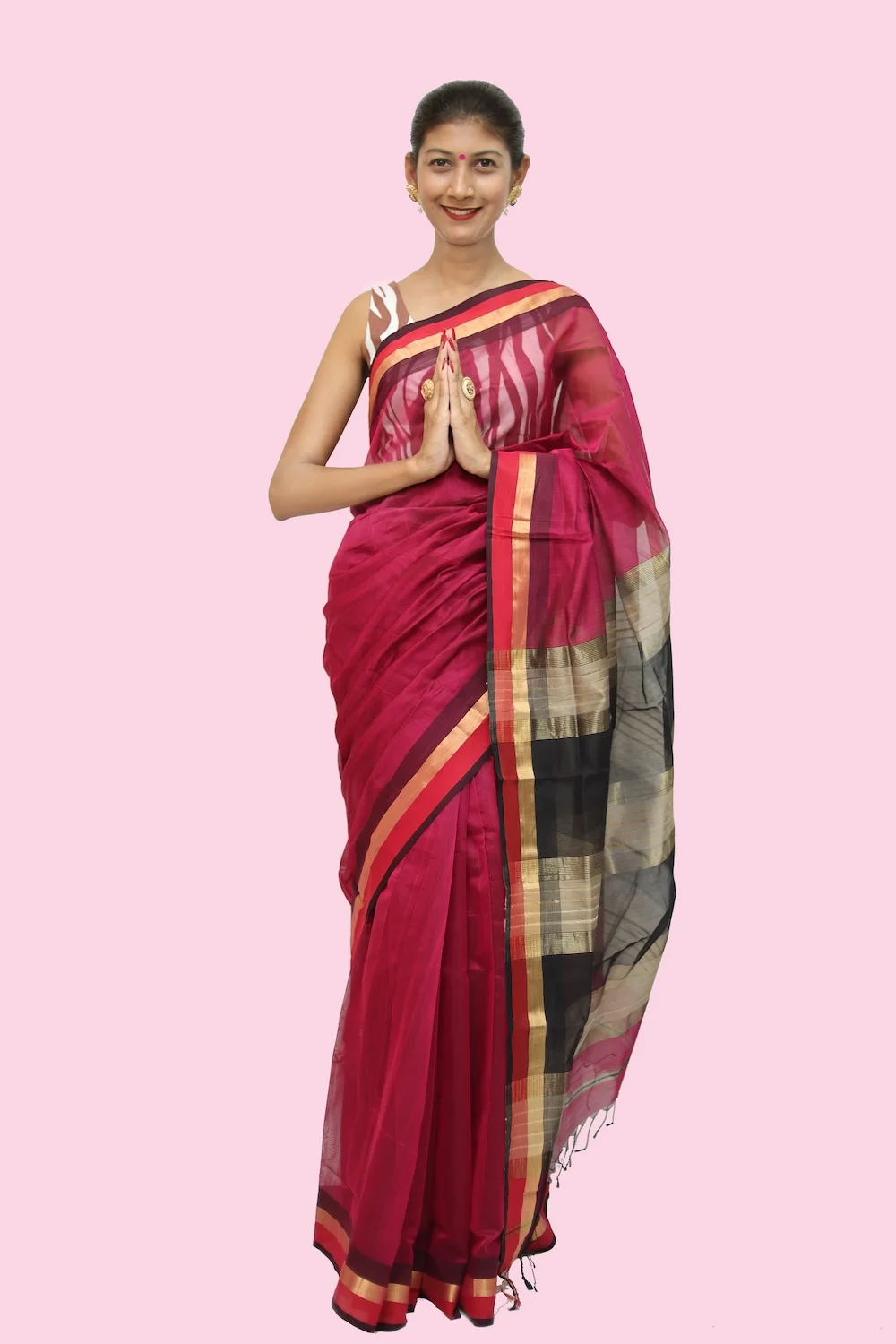 Legacy Kosa Pallu Rani Pink Black handloom Saree with Tassels