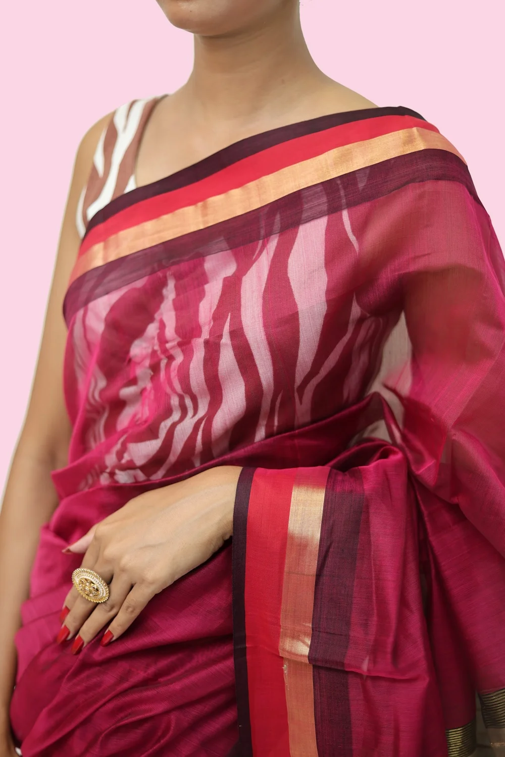 Imperial Maheshwari handloom Tissue Saree with Tassels – Red