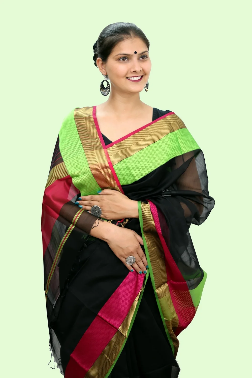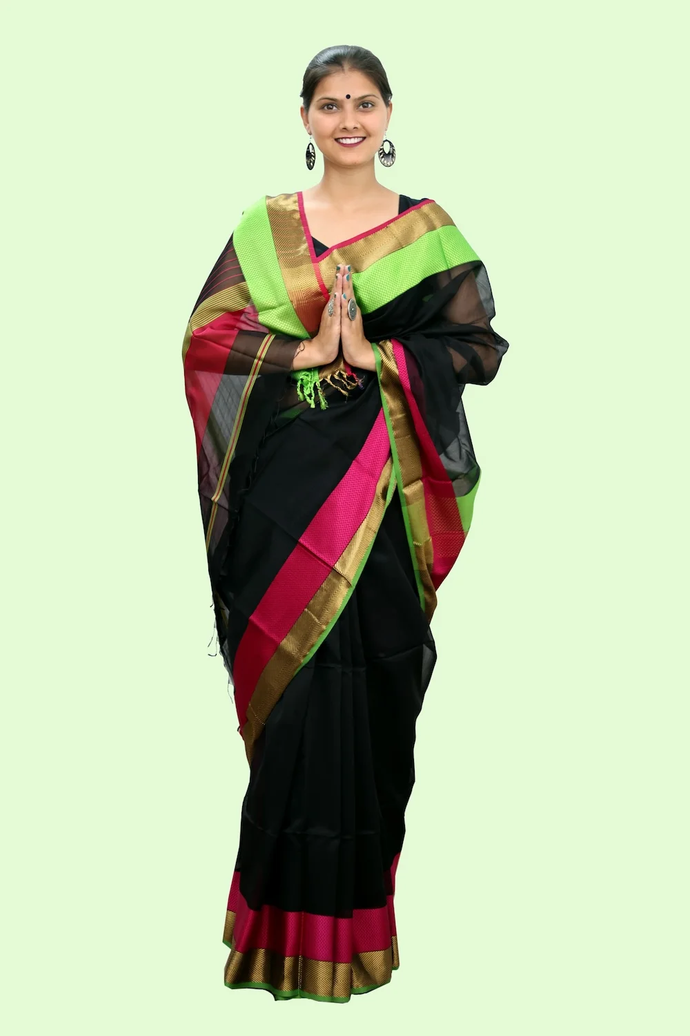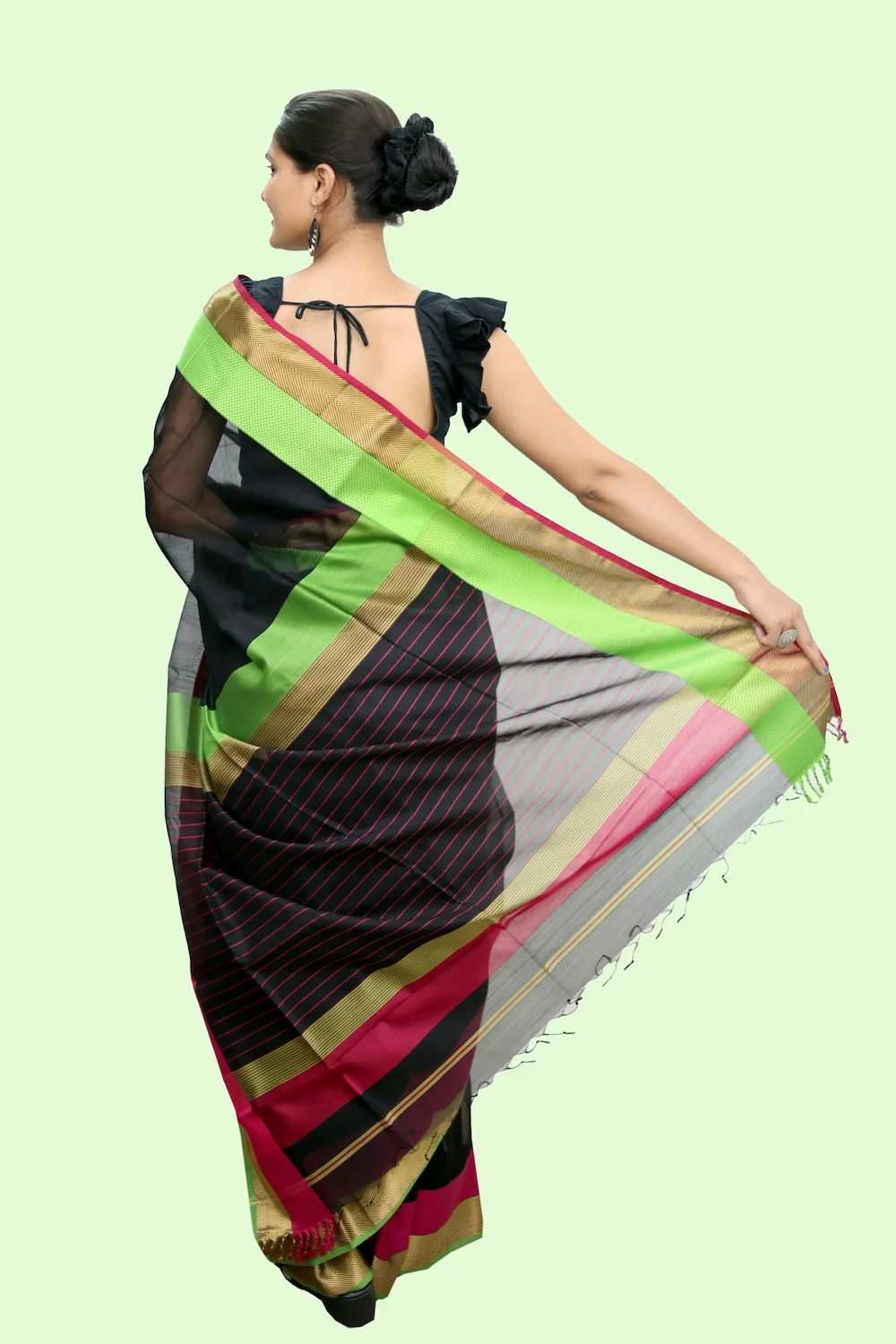 Magical Black Trio handloom Saree with Tassels