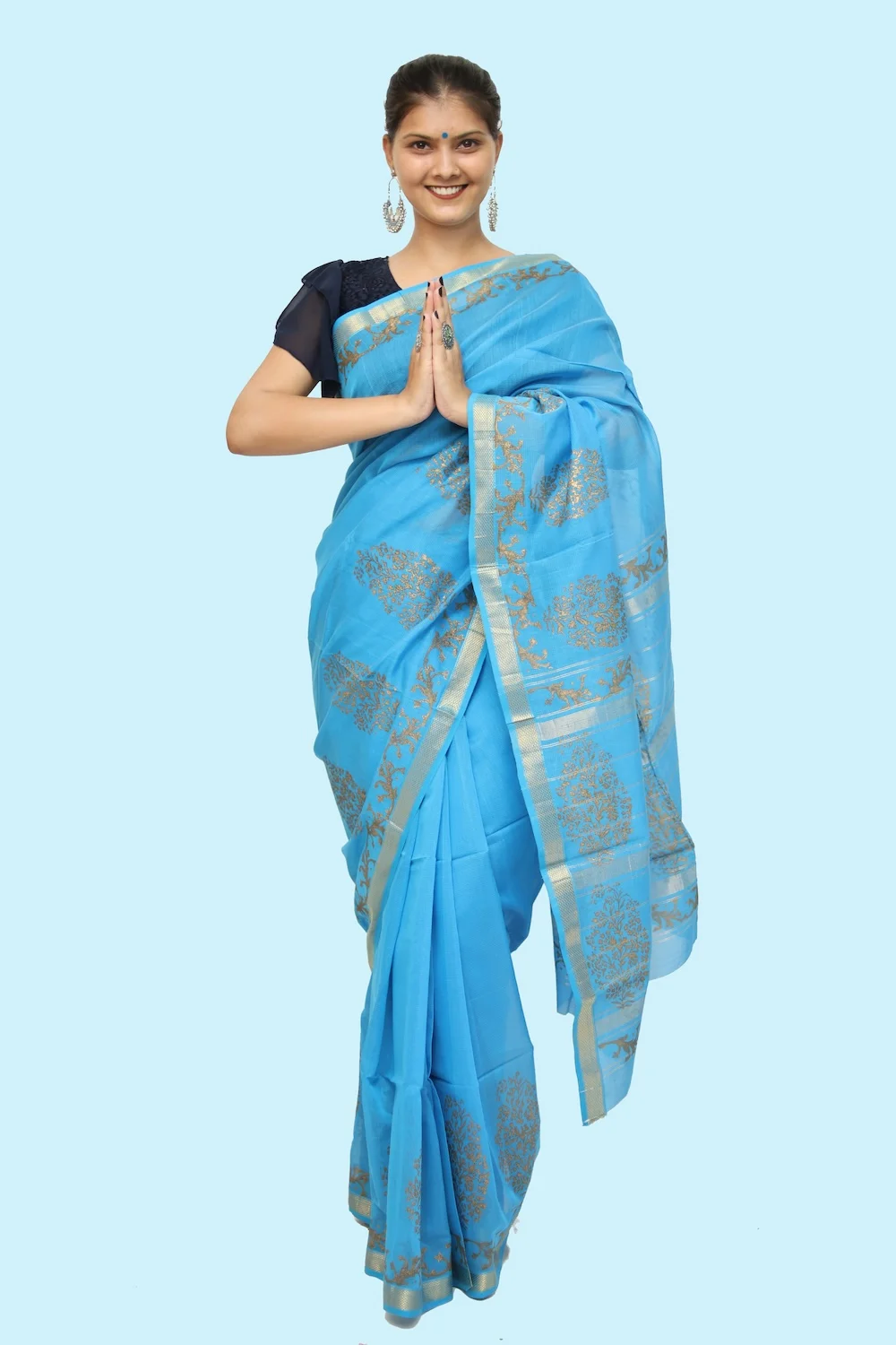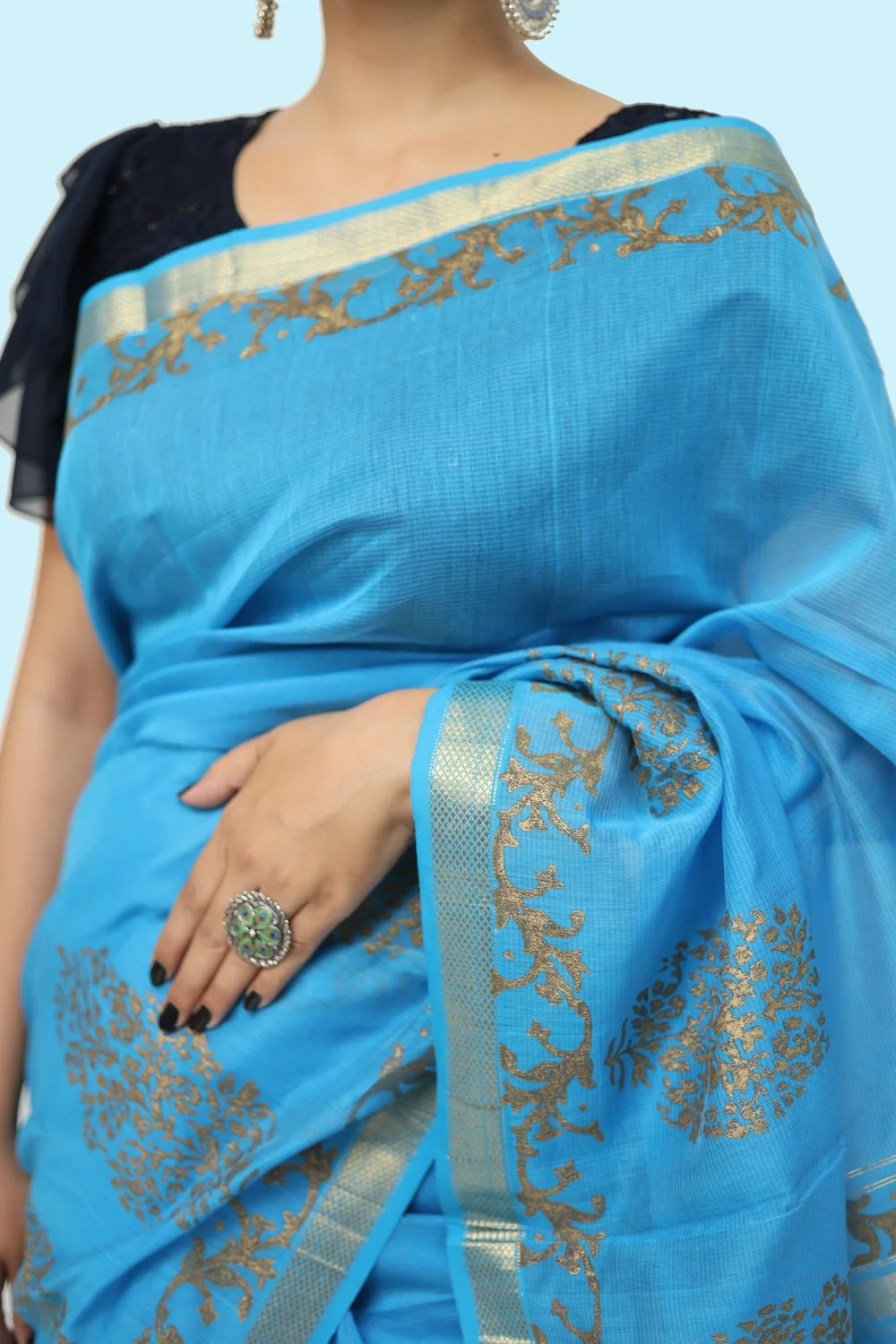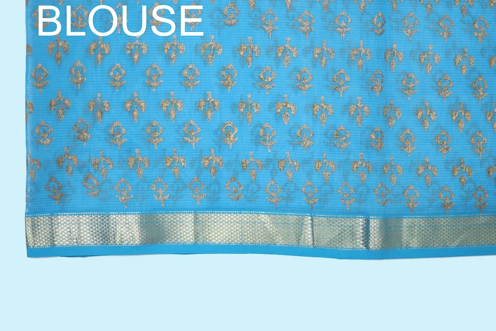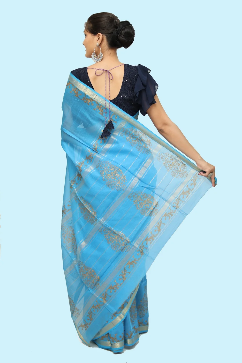 Imperial Maheshwari handloom Tissue Saree with Tassels – Azure Blue