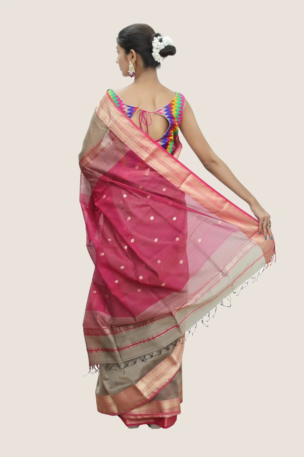 Imperial Maheshwari Rich Thread Brocade Saree with Tassels