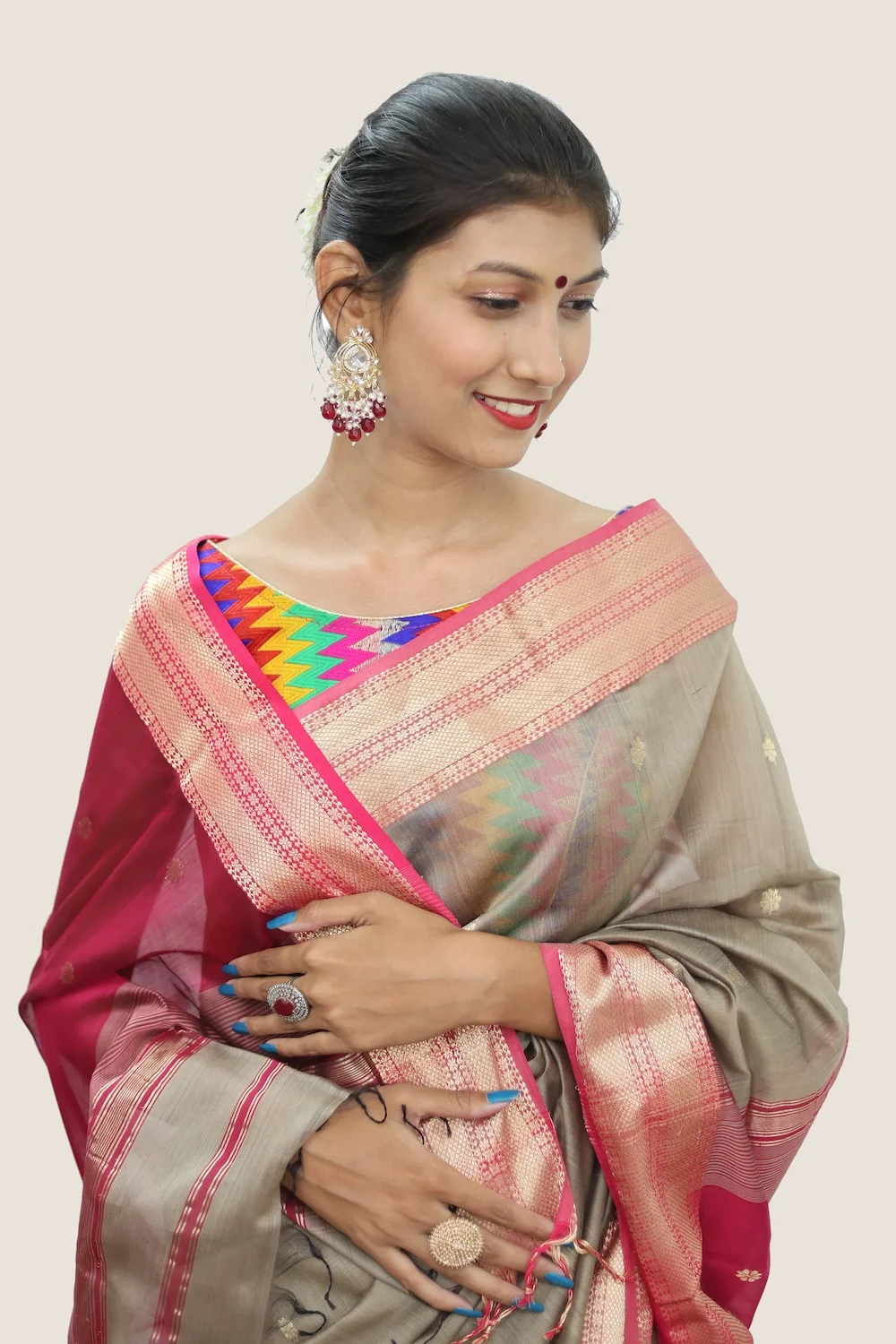 Imperial Tussar Zari Brocade handloom Saree with Tassels