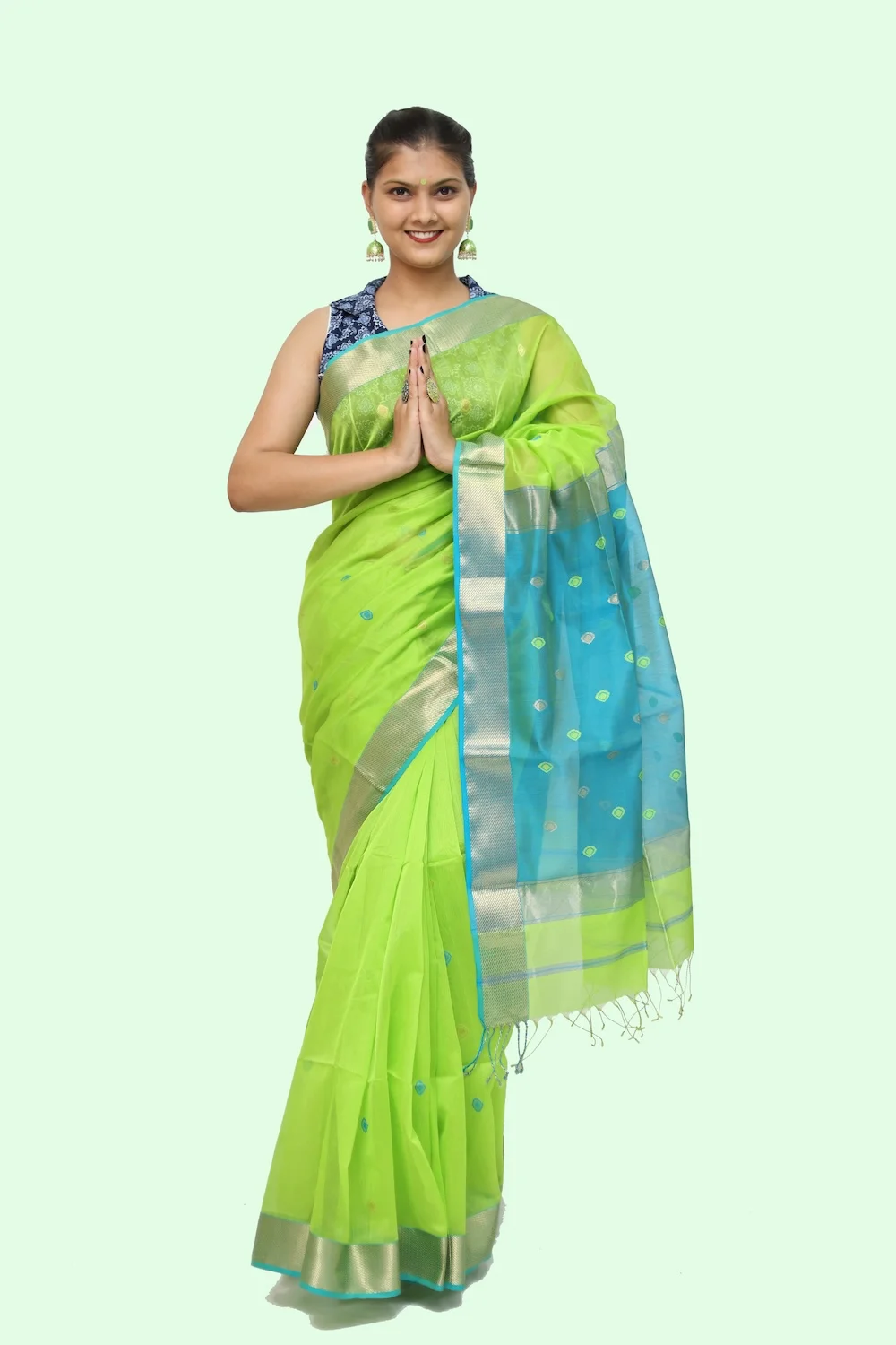Imperial Maheshwari Rich Thread Brocade Saree with Tassels – Green
