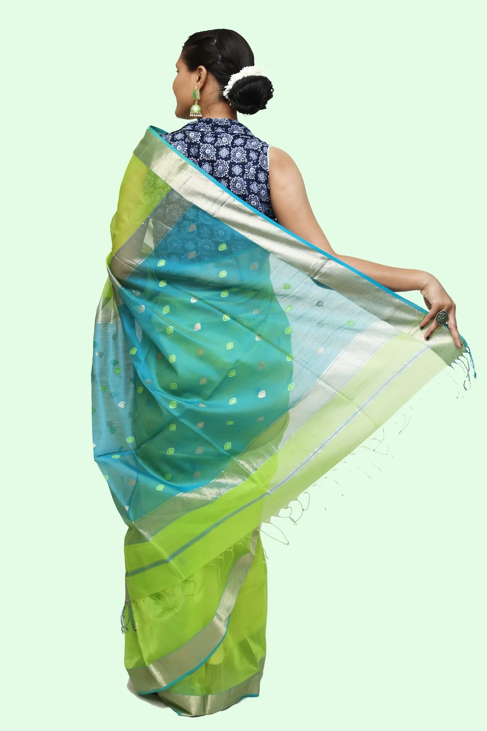 Imperial Maheshwari handloom Tissue Saree with Tassels – Azure Blue