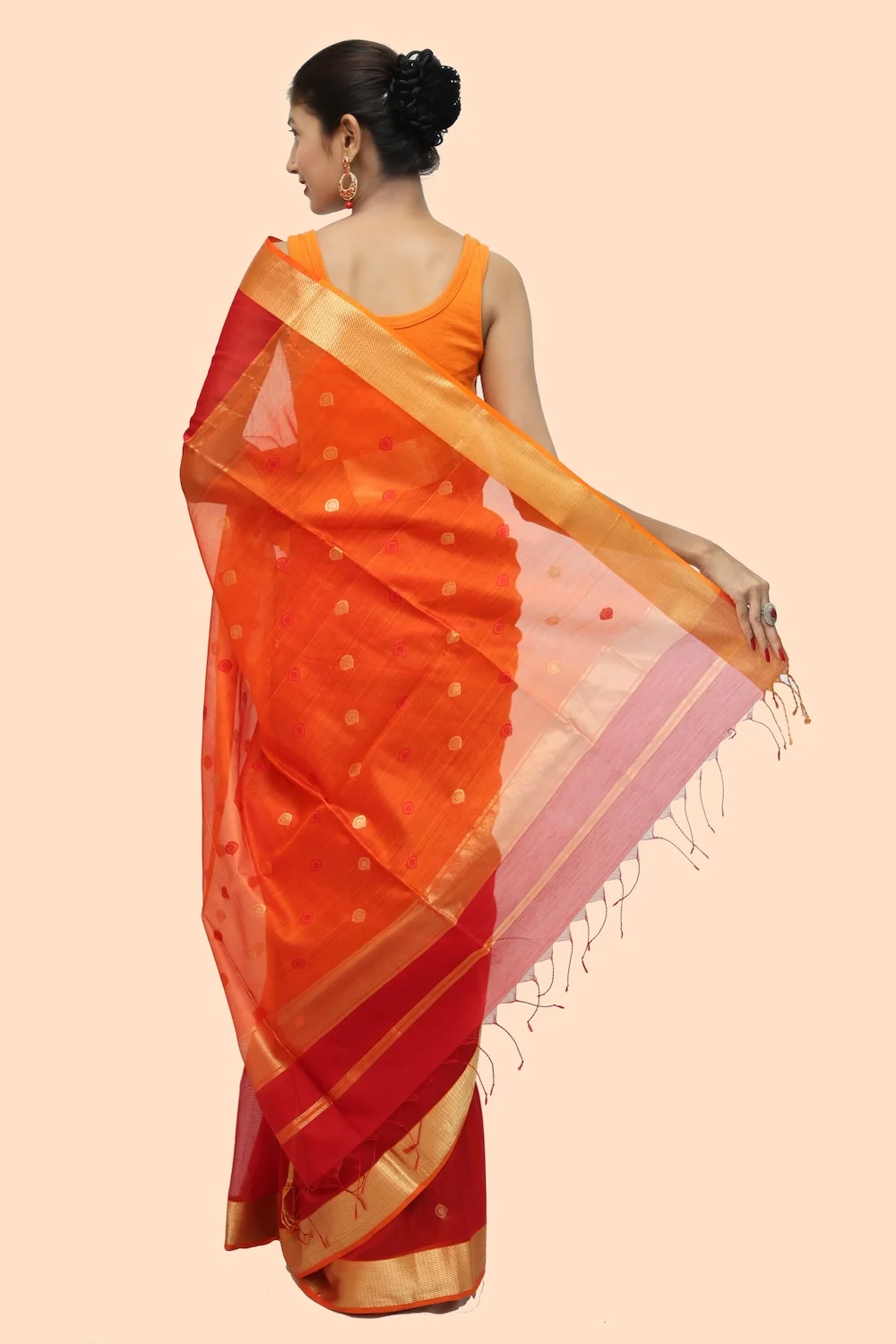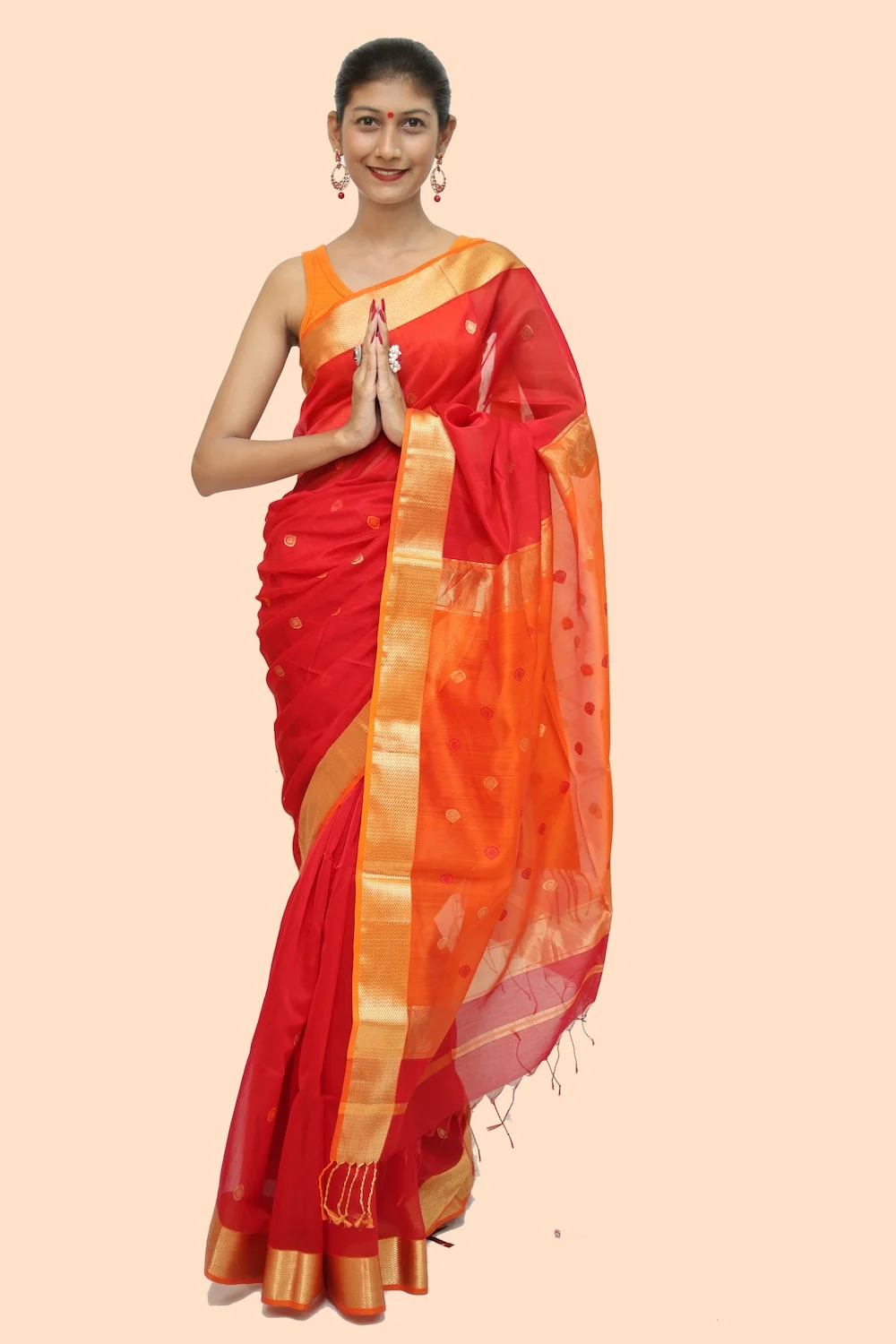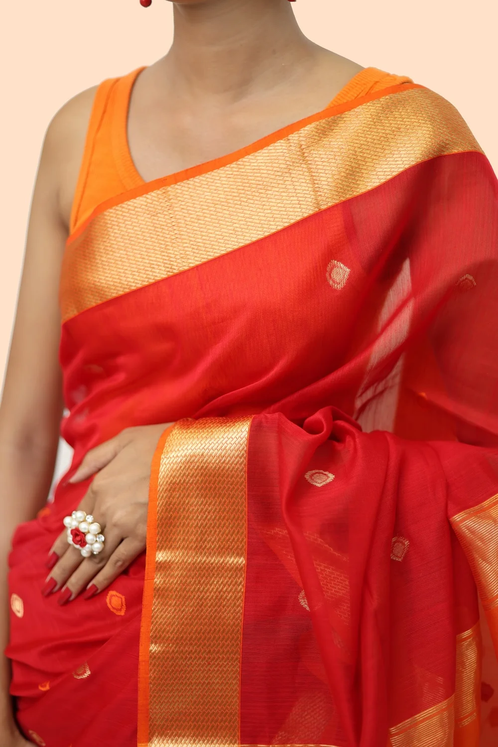 Imperial Maheshwari handloom Tissue Saree with Tassels – Red